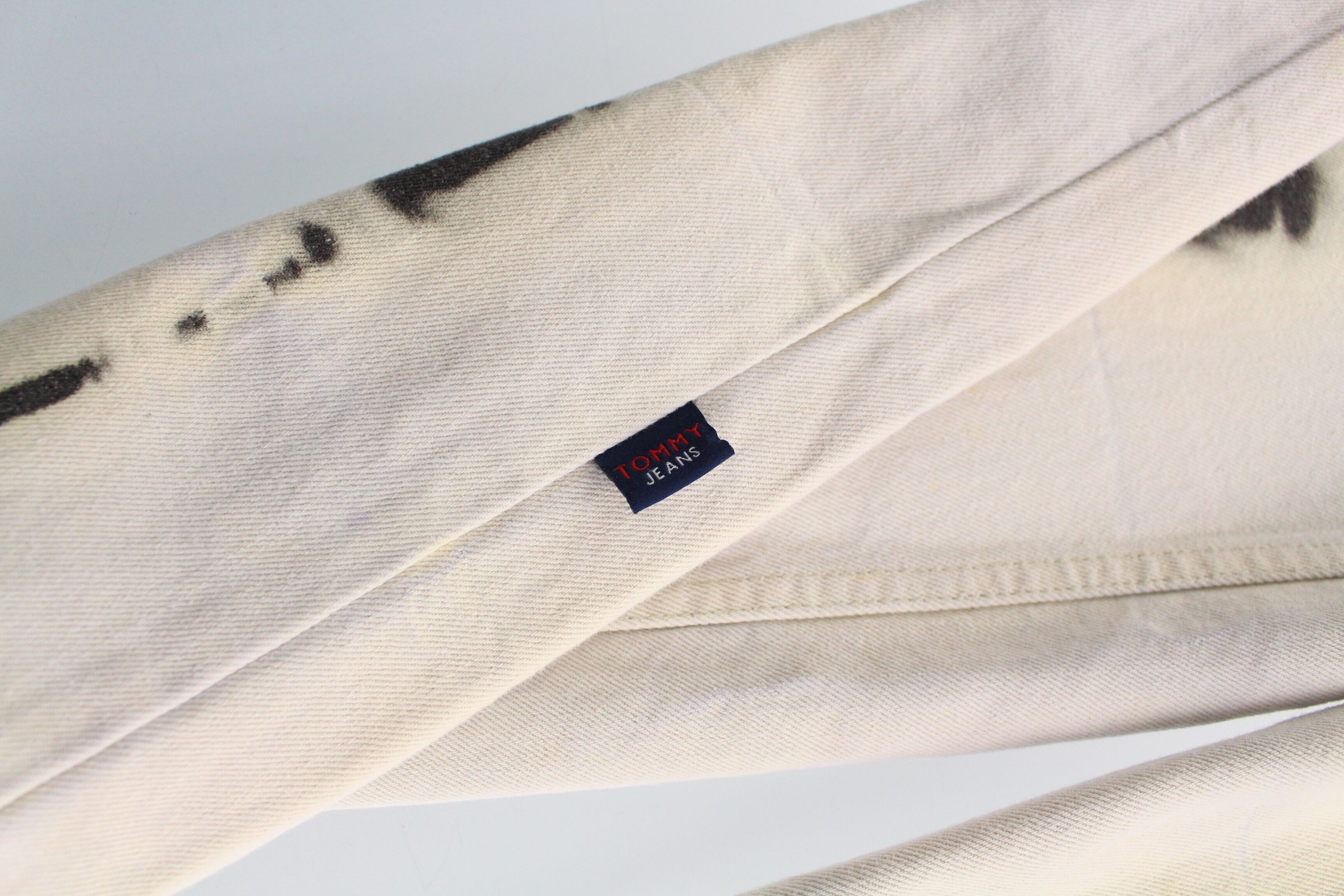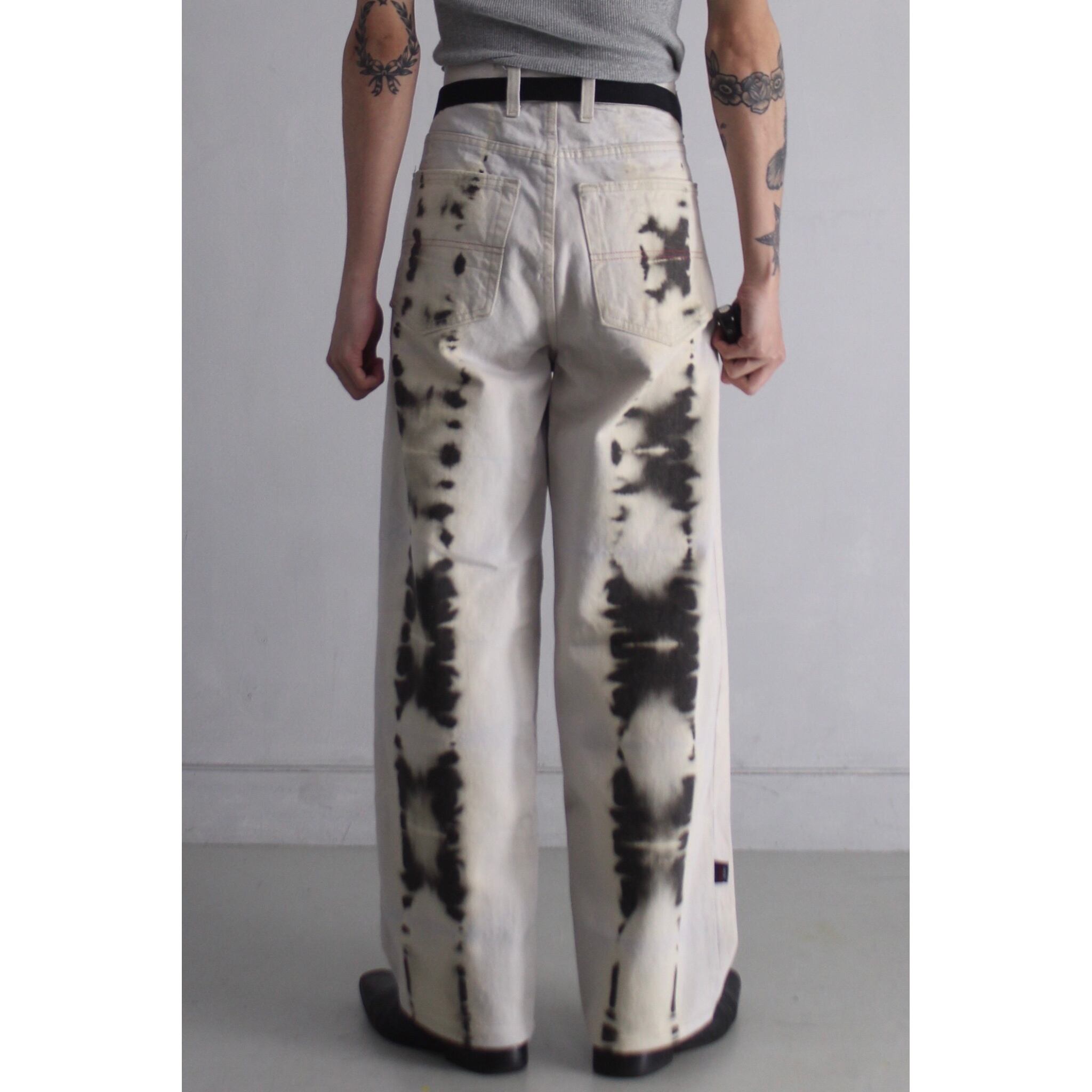 トップから流れるもはやアートなプリントデザイン。のっぺりしがちなホワイトのデニムパンツを一気に一点ものに押し上げるデザイン製。