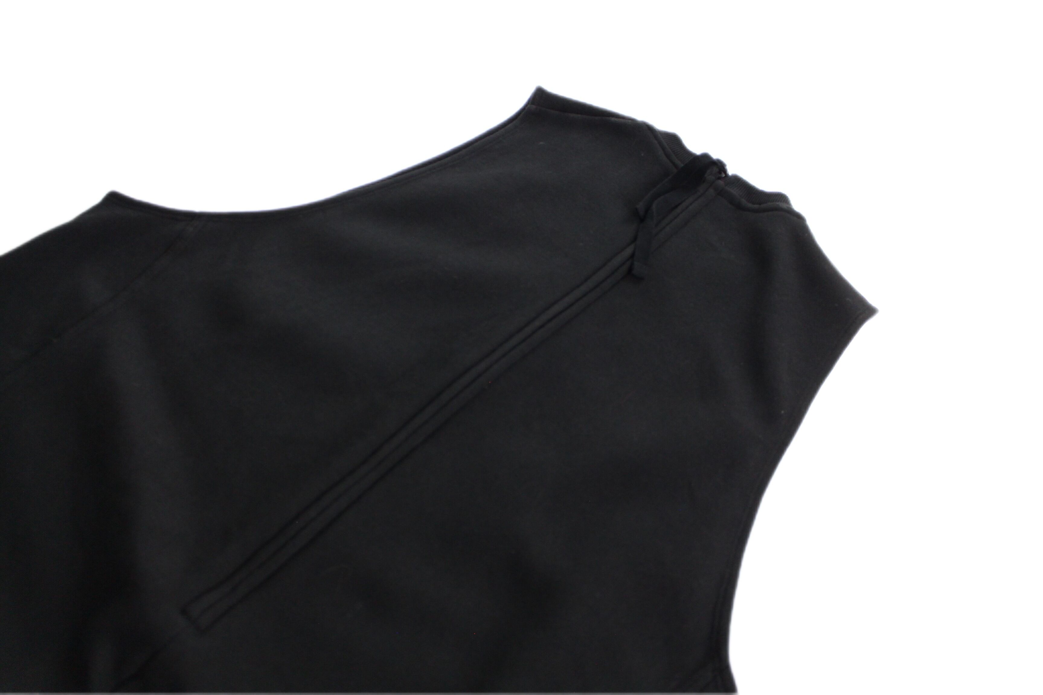 フロントクルーネック仕様に広めのアームホール。両サイドにはポケットが付きバックジップディテール。深めに取られたジップも着脱のしやすさを後押し。さり気ないブランドロゴタグも◎