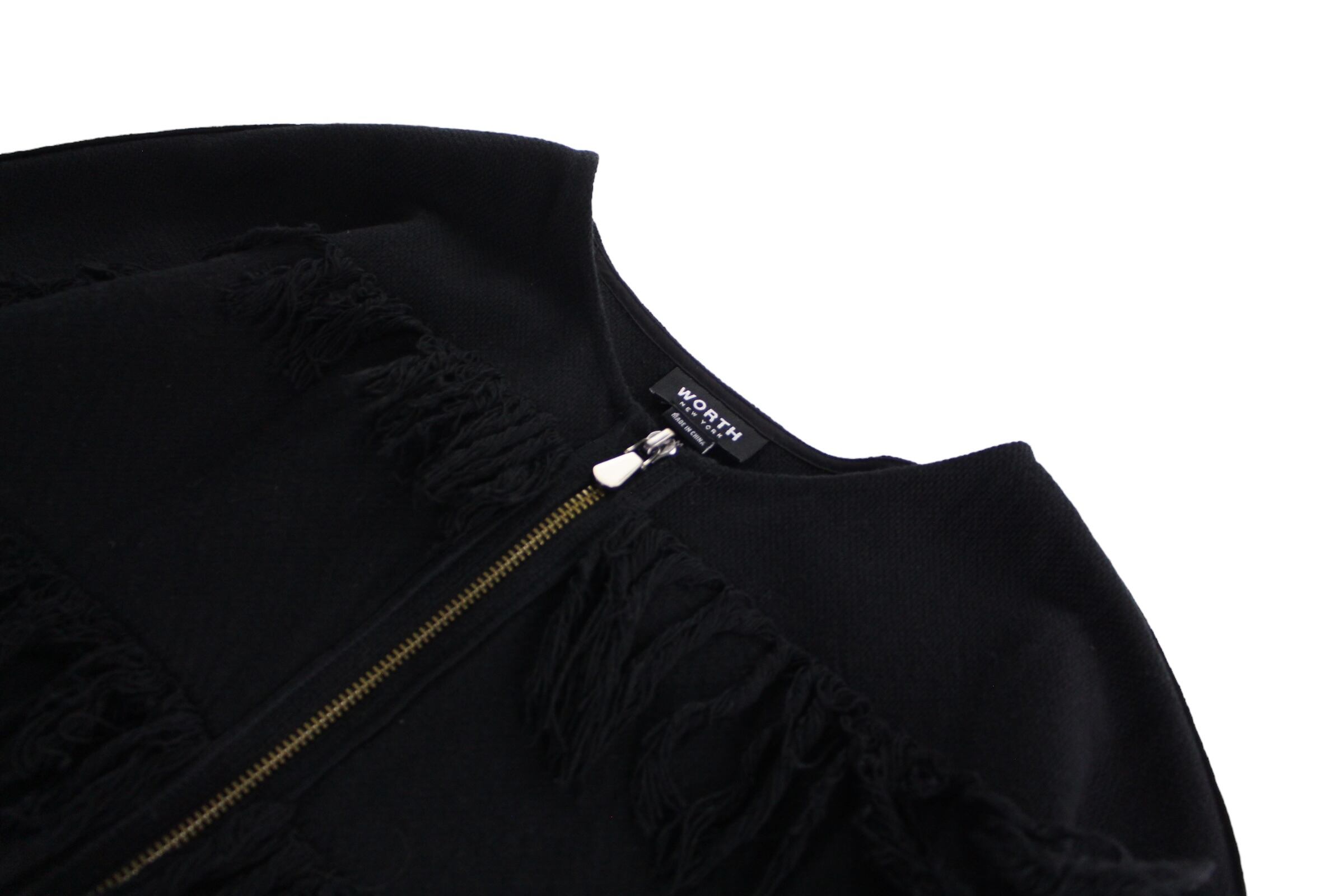 【OTSU】very short length fringe design double zip no collar jacket -9665-