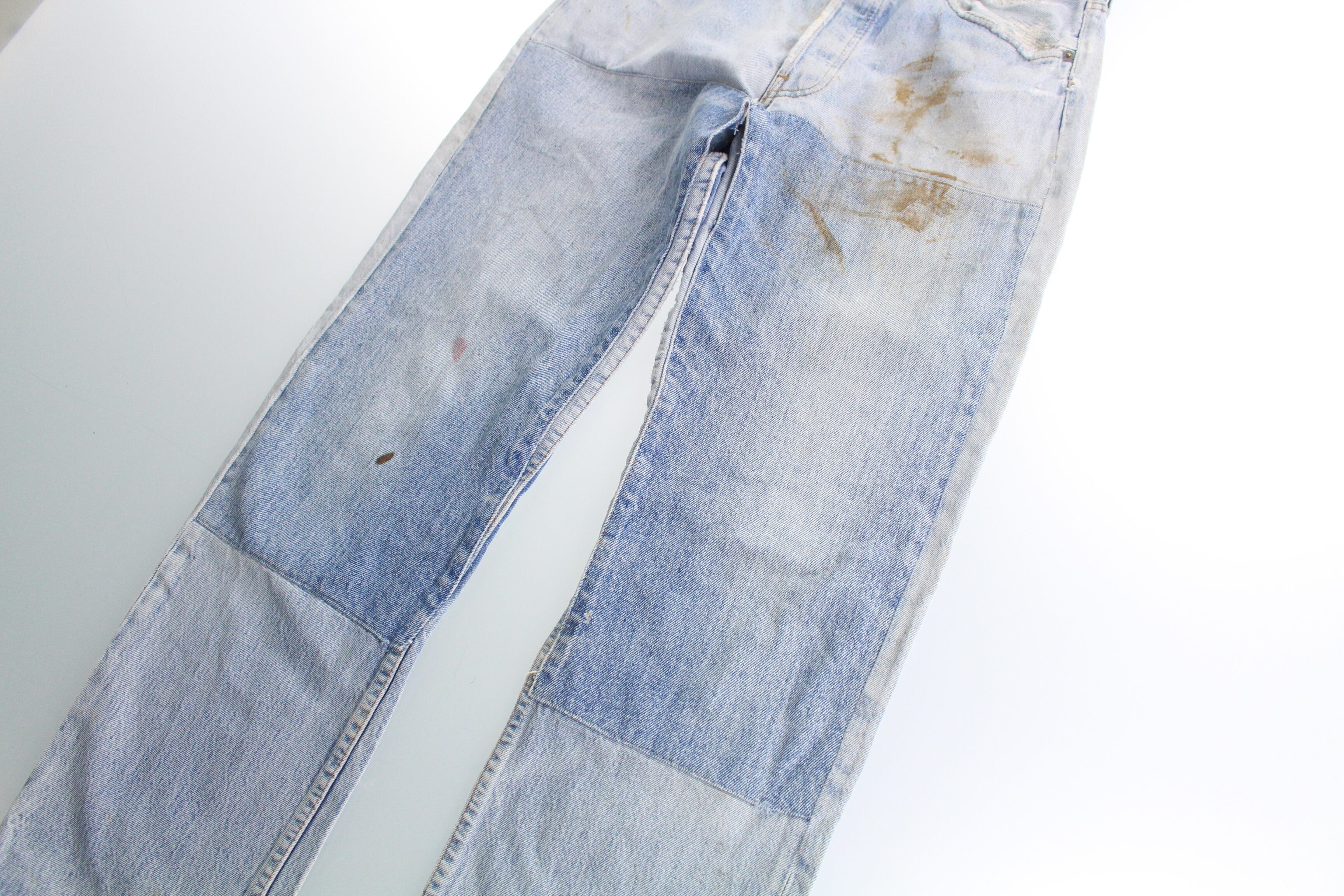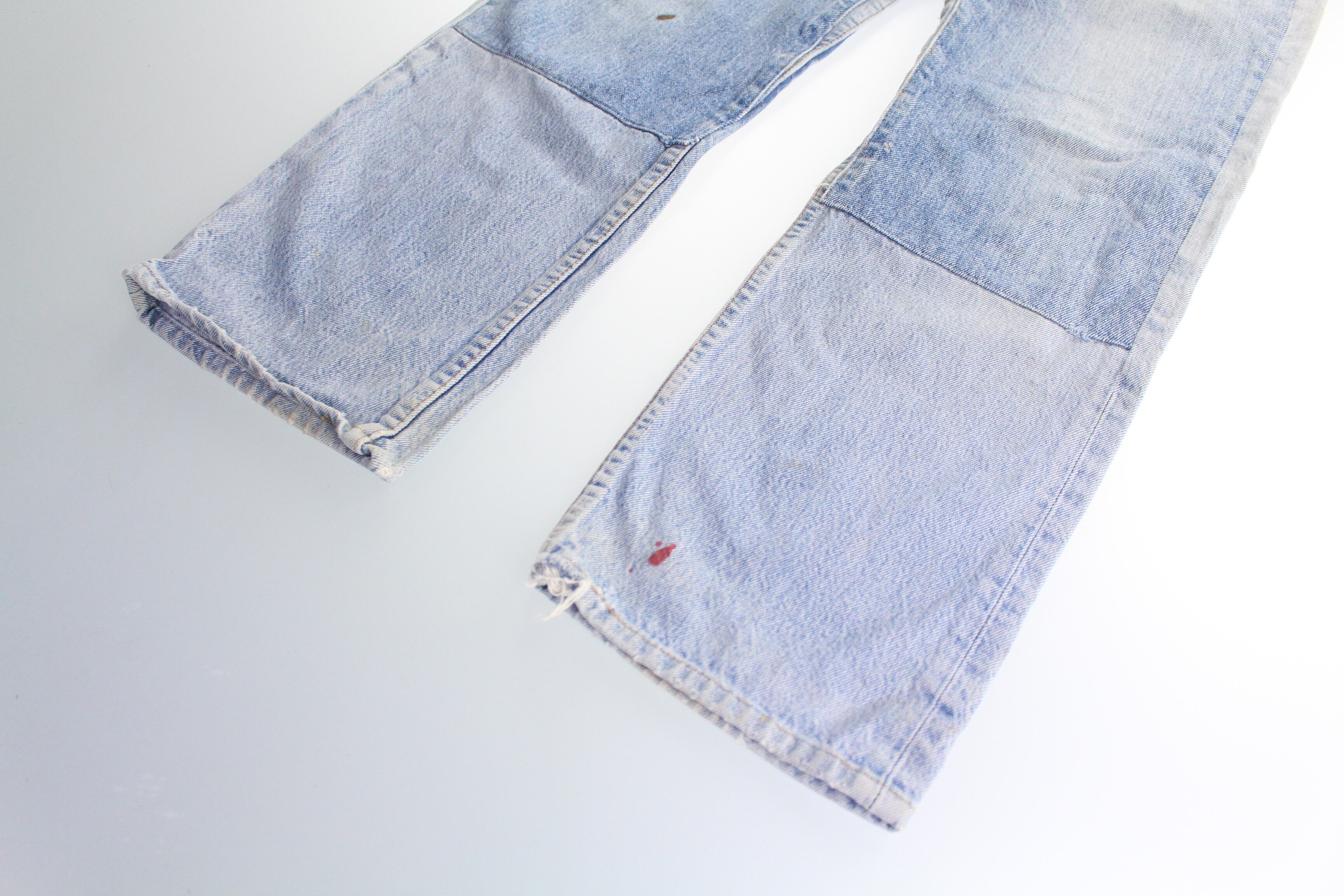 膝部分はダブルニーみたく色味の違うデニムが貼られたり、随所にタタキが施されたり、都合良く入らないリアルな汚れなんか素晴らしい雰囲気です。