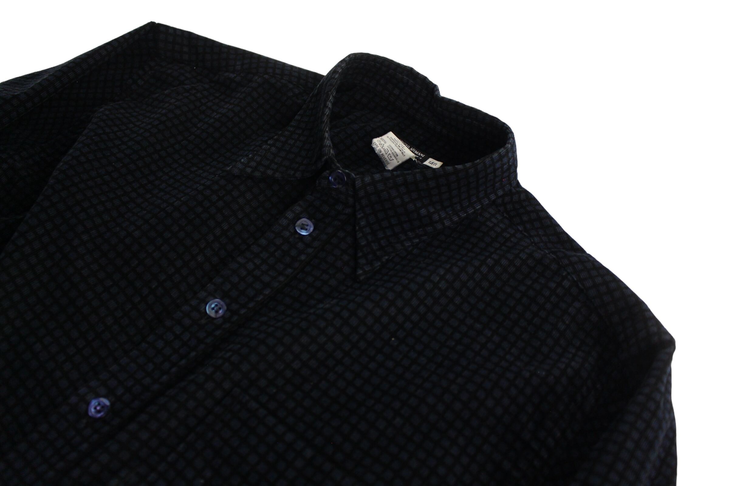 【OTSU】1980's vintage GIORGIO ARMANI check pattern corduroy dress shirt made in ITALY -9680-