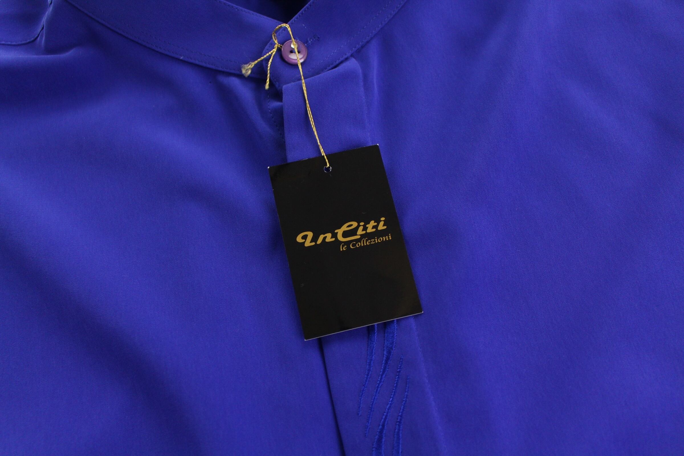 【OTSU】deadstock "toromi" embroidered design band collar shirt -9681-