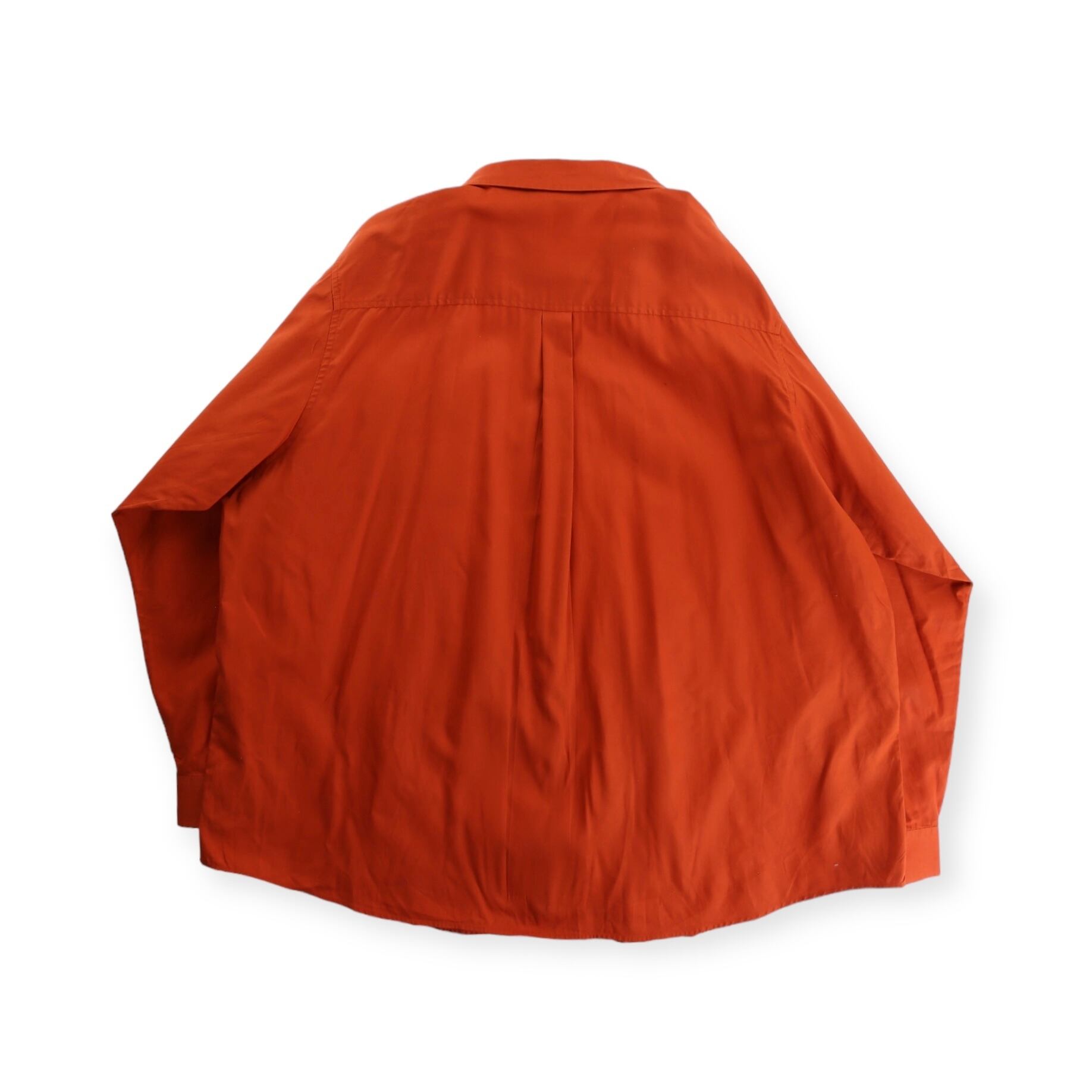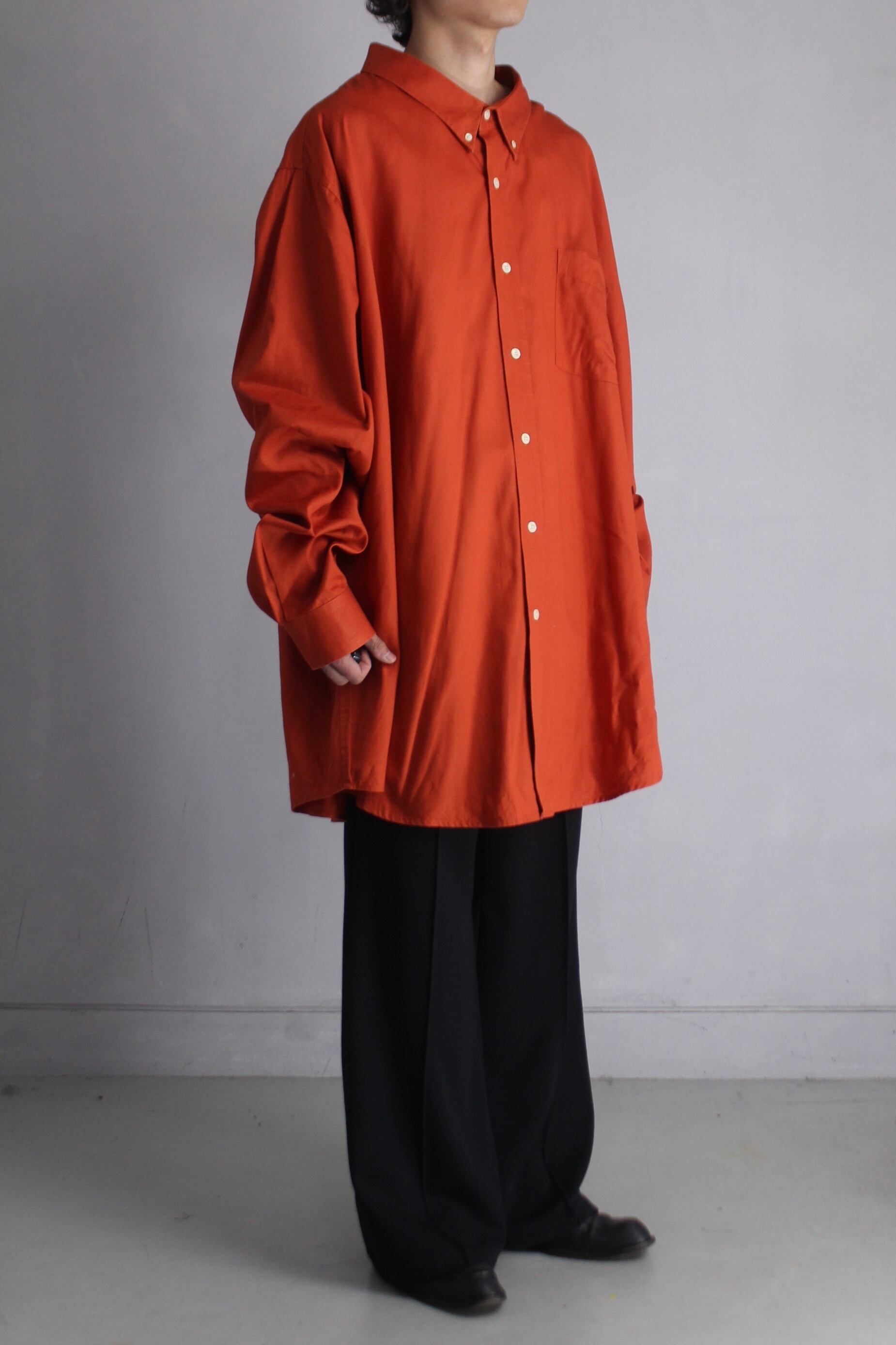 鮮やかなオレンジにたっぷりなサイズ感。1着で存在感は抜群です。サイズはたっぷりですがしっかりと落ち感があり空気感が◎ スタイリングの主役として着用出来るシャツです。