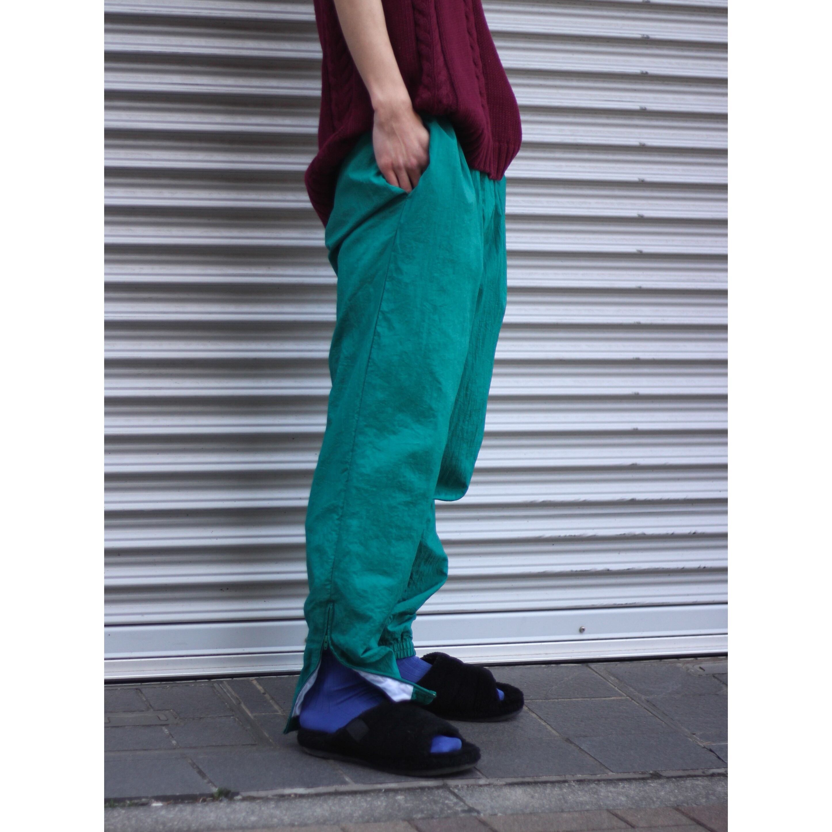 シャリ感のある柔らかいナイロン生地に裏地は天竺生地と膝下からはポリ生地の切替でどのシーズンでも快適に履いて頂ける一本です