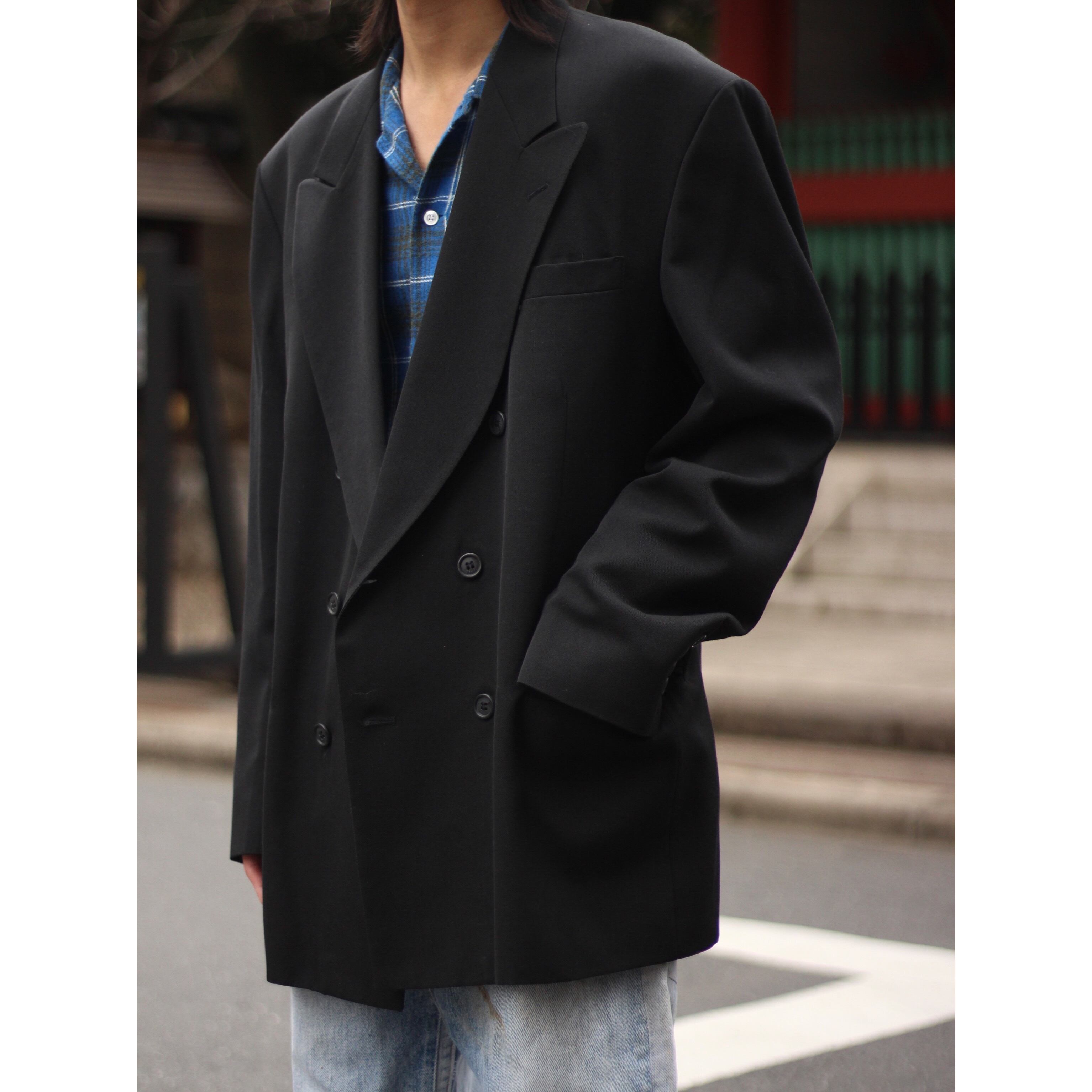 【CUBA】1990s wool gabardine black double tailored jacket -7135-