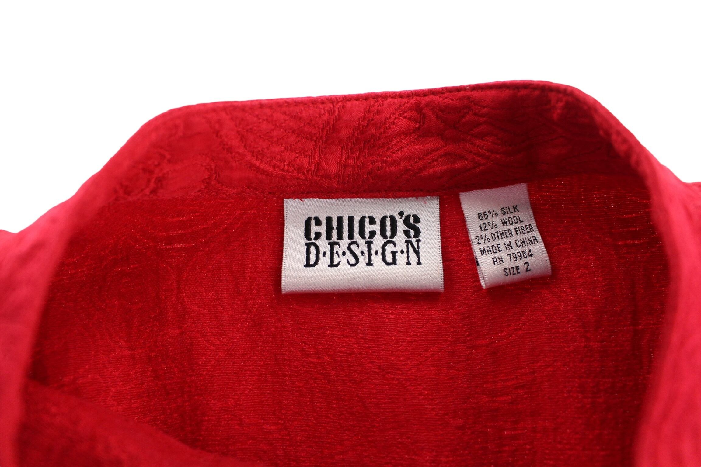 【OTSU】1990's CHICO'S DESIGN silk × wool woven pattern design china jacket -9756-
