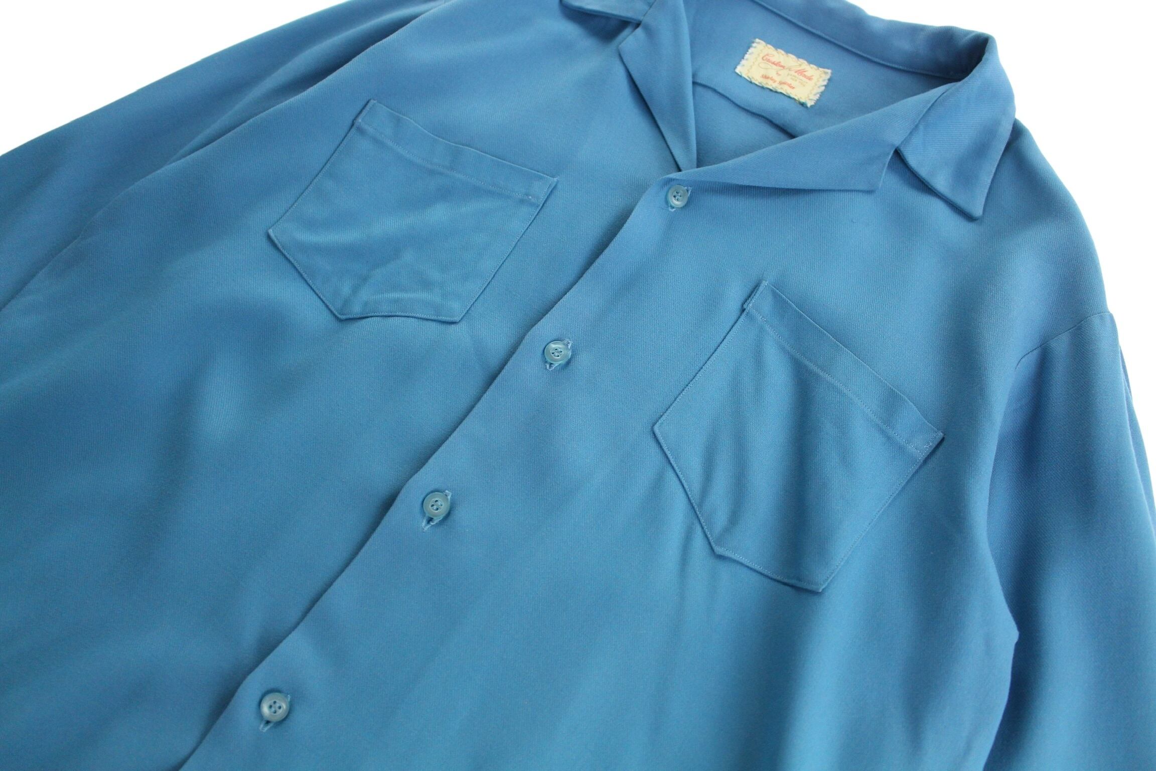 【OTSU】1970's〜 vintage rayon gabardine open collar shirt -9757-
