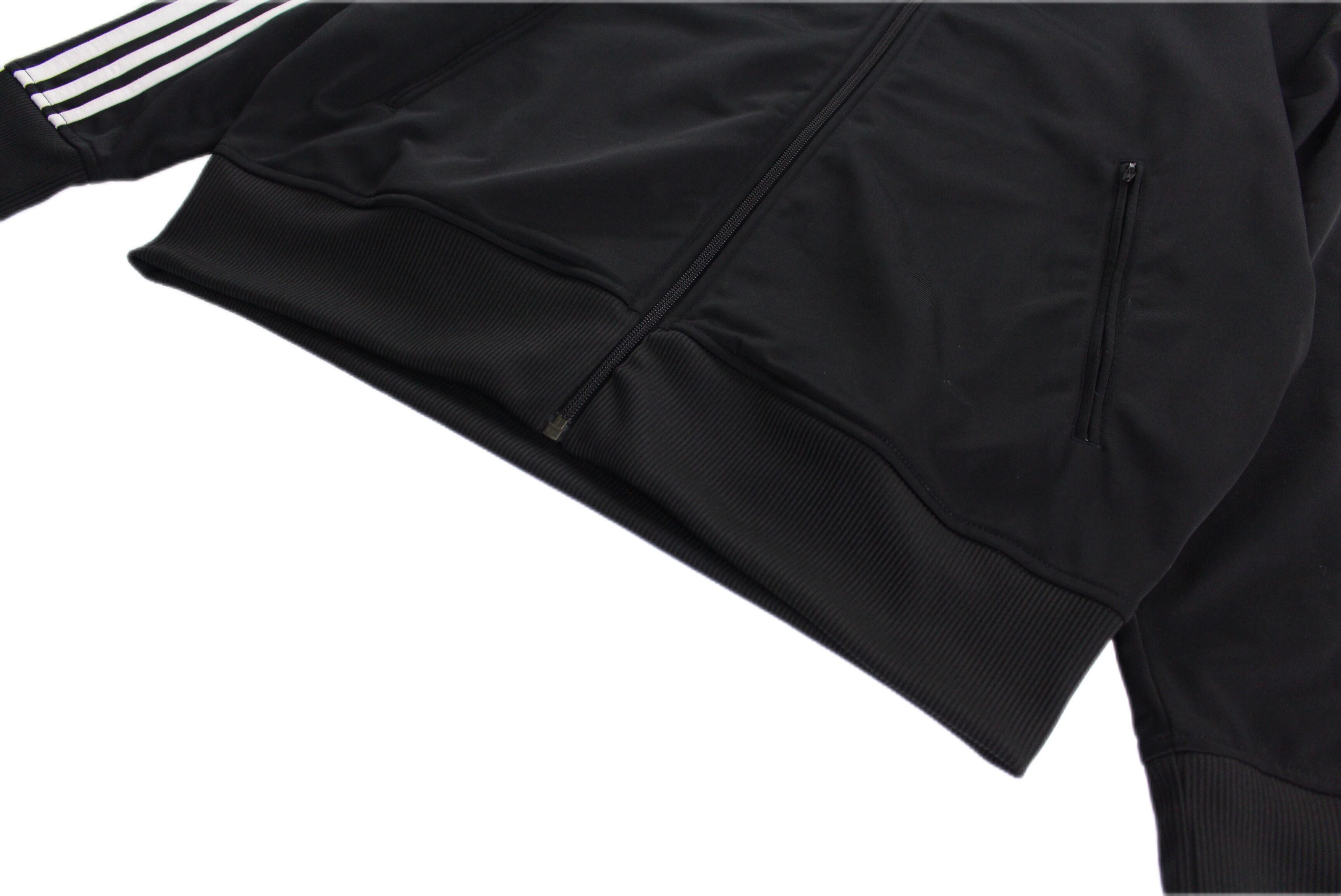王道adidasのスリーラインデザインにジャージー生地。ブラックボディにブランドを象徴するアーム三本ホワイトライン。