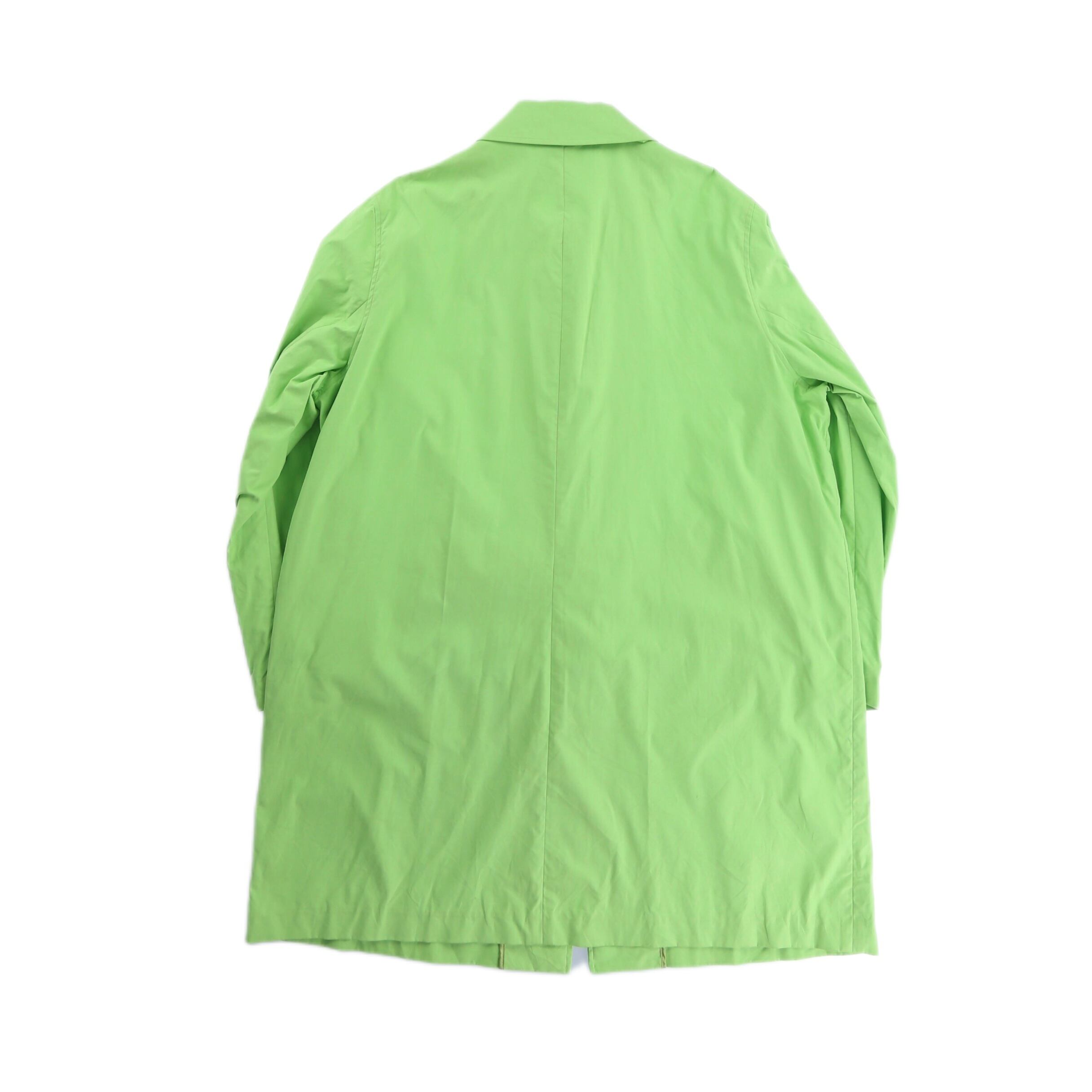 一際目を惹くマスクメロンカラーに映えるゴールドのターンロック式ボタン。バッグ等ではよく見かけるボタンですが服では珍しい、、