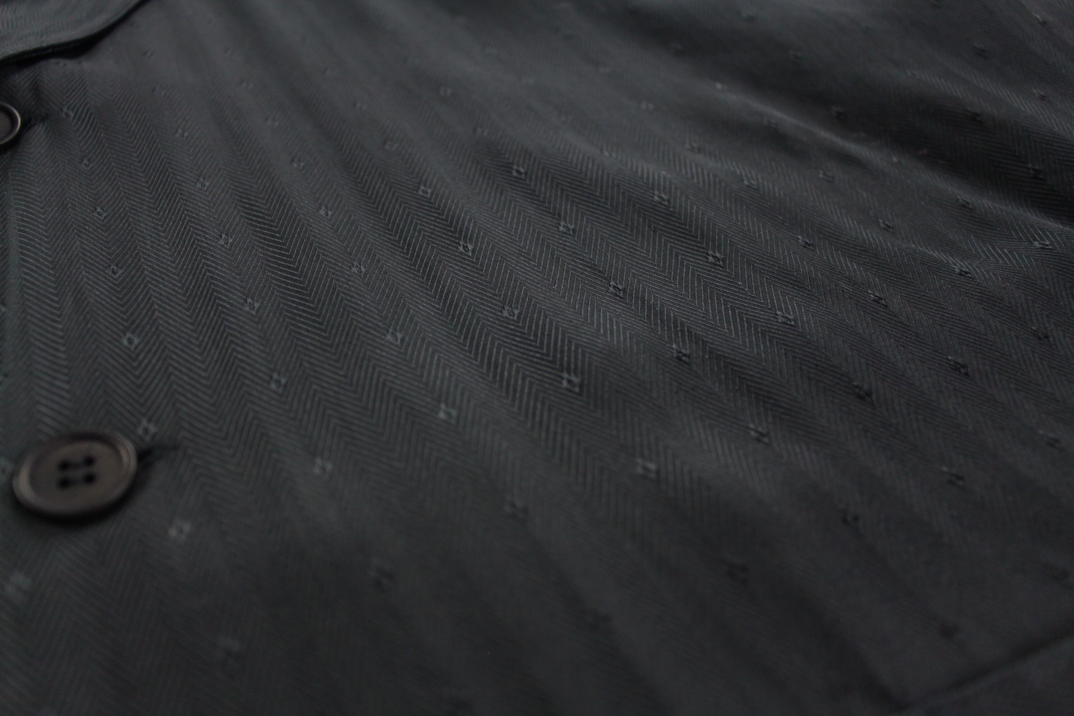 ヘリンボーンの織柄にポケ付きのパジャマシャツのディテールとなります