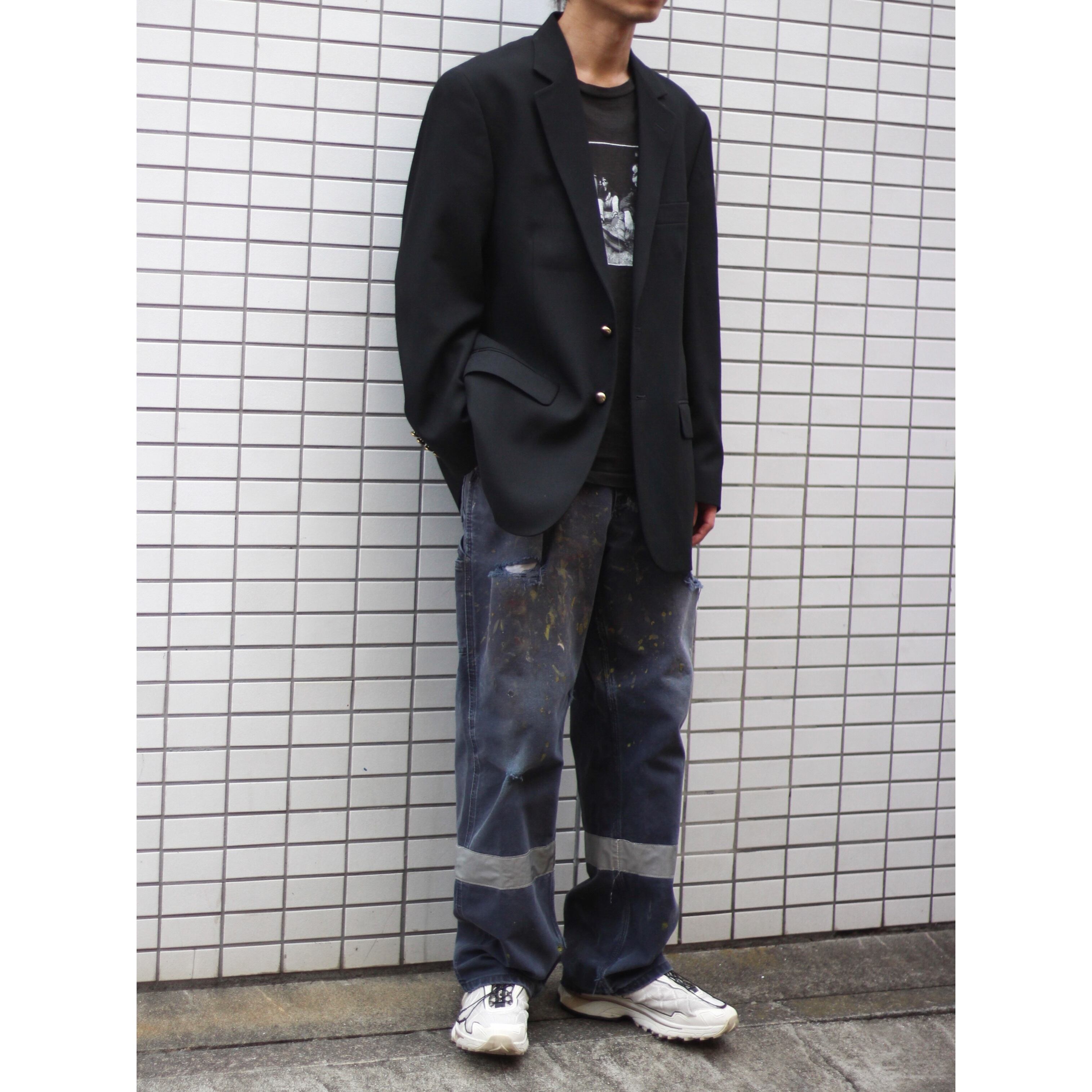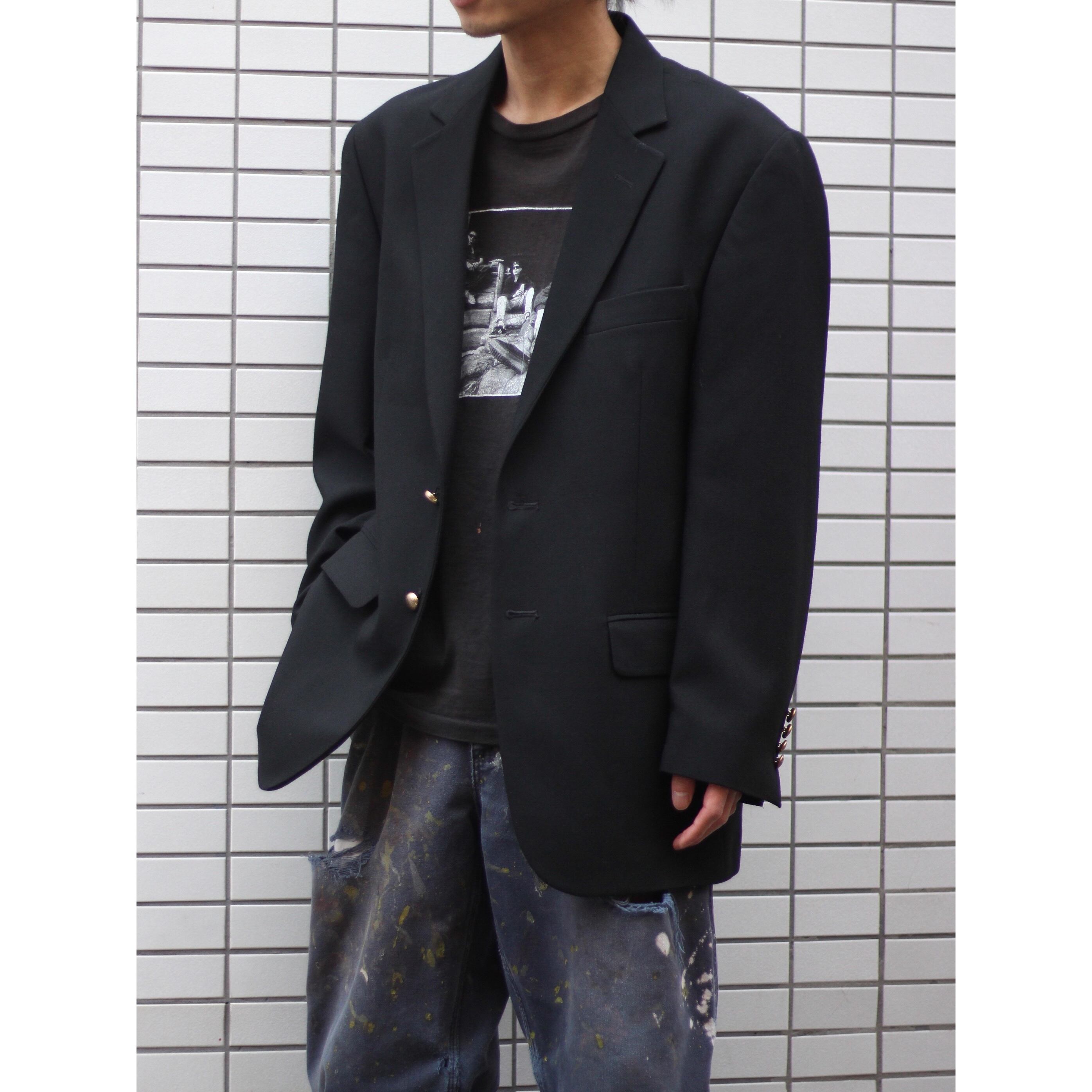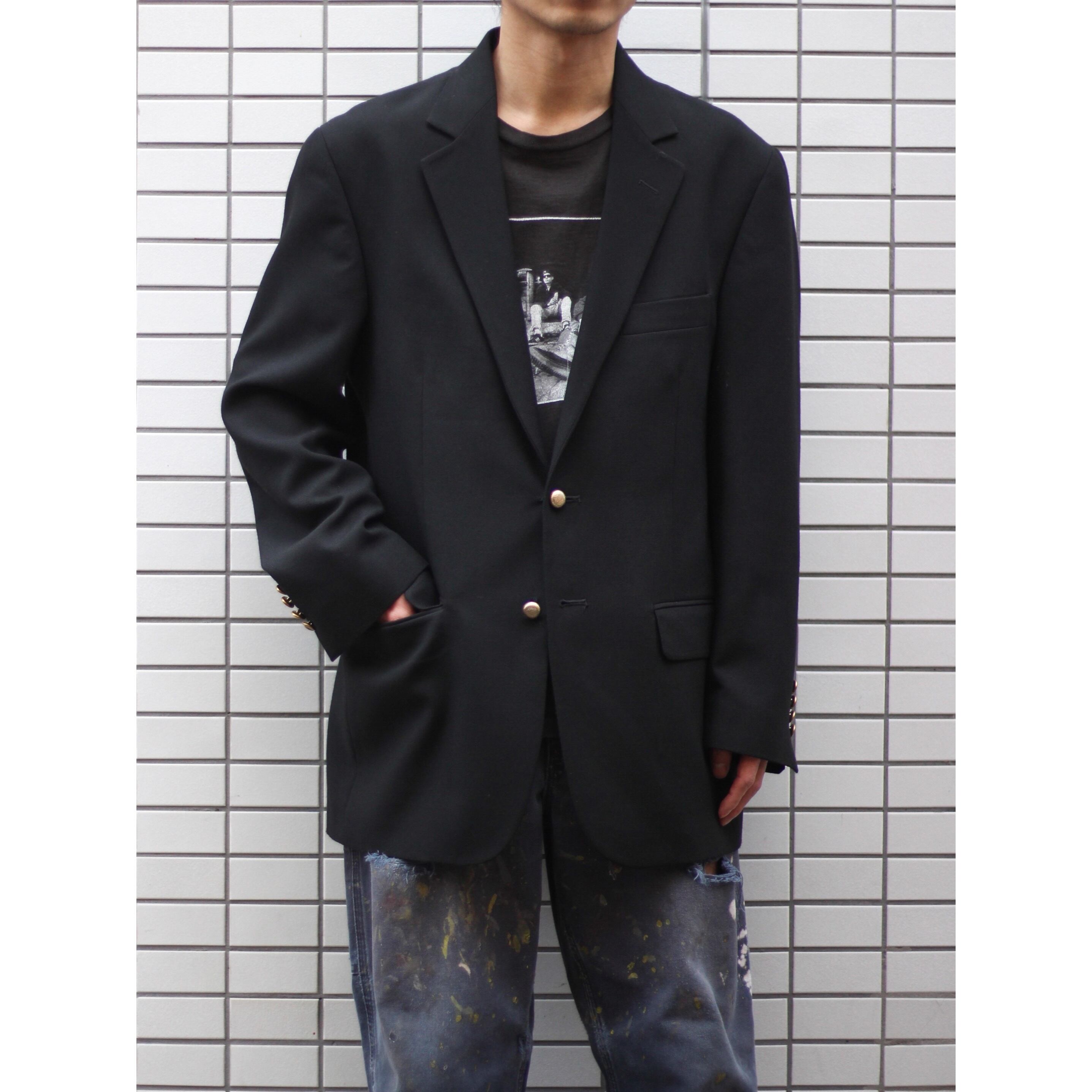 【CUBA】1990s vintage black wool tailored jacket with gold button -7175-