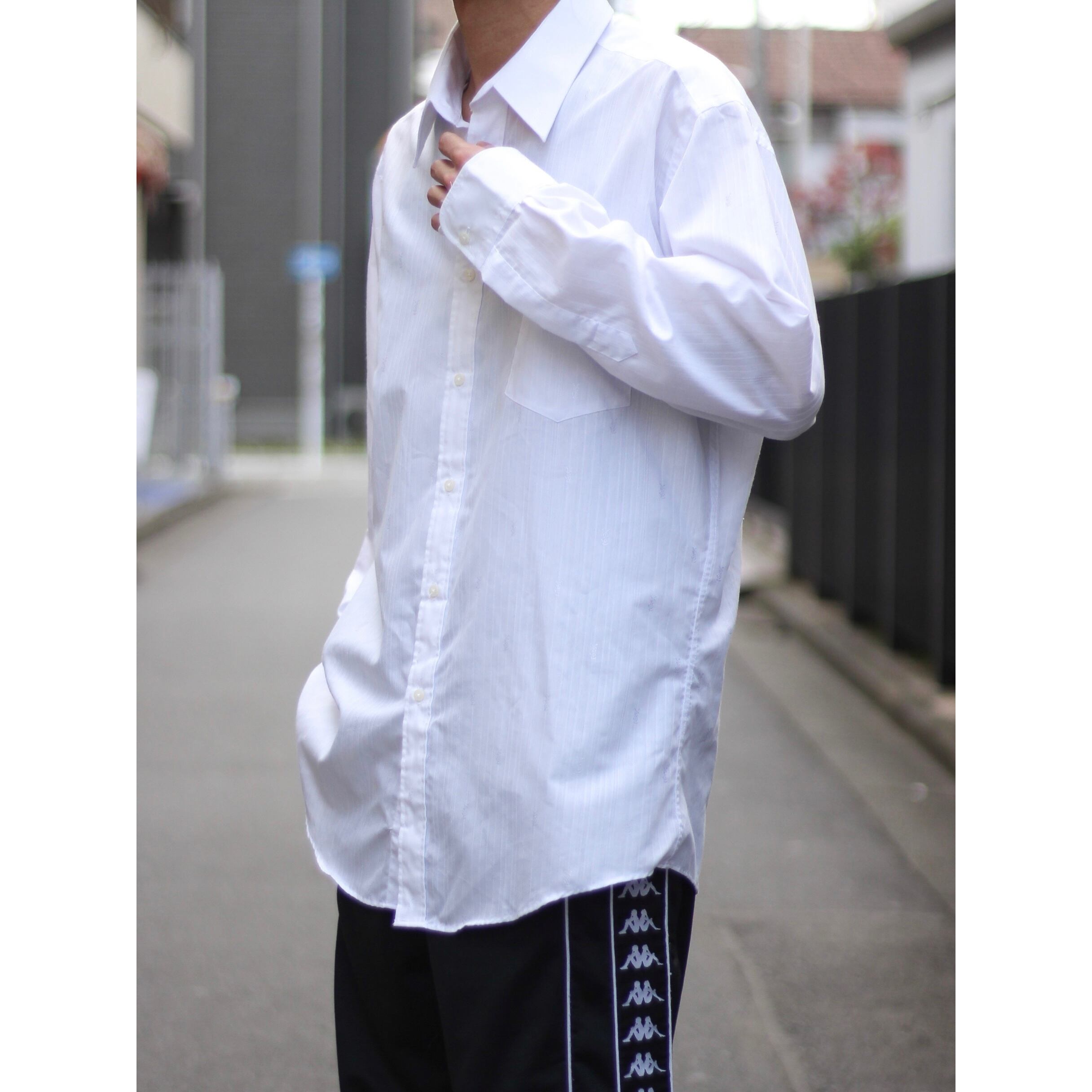 【CUBA】1990s Yves Saint Laurent logo design white dress shirt -7177-