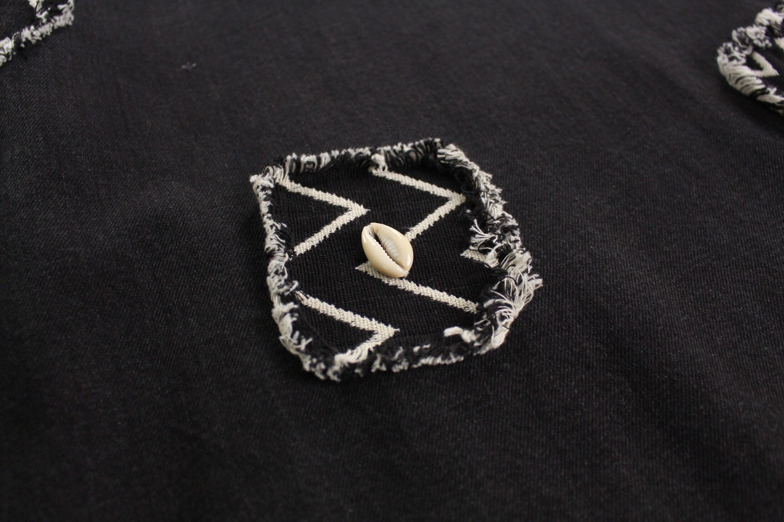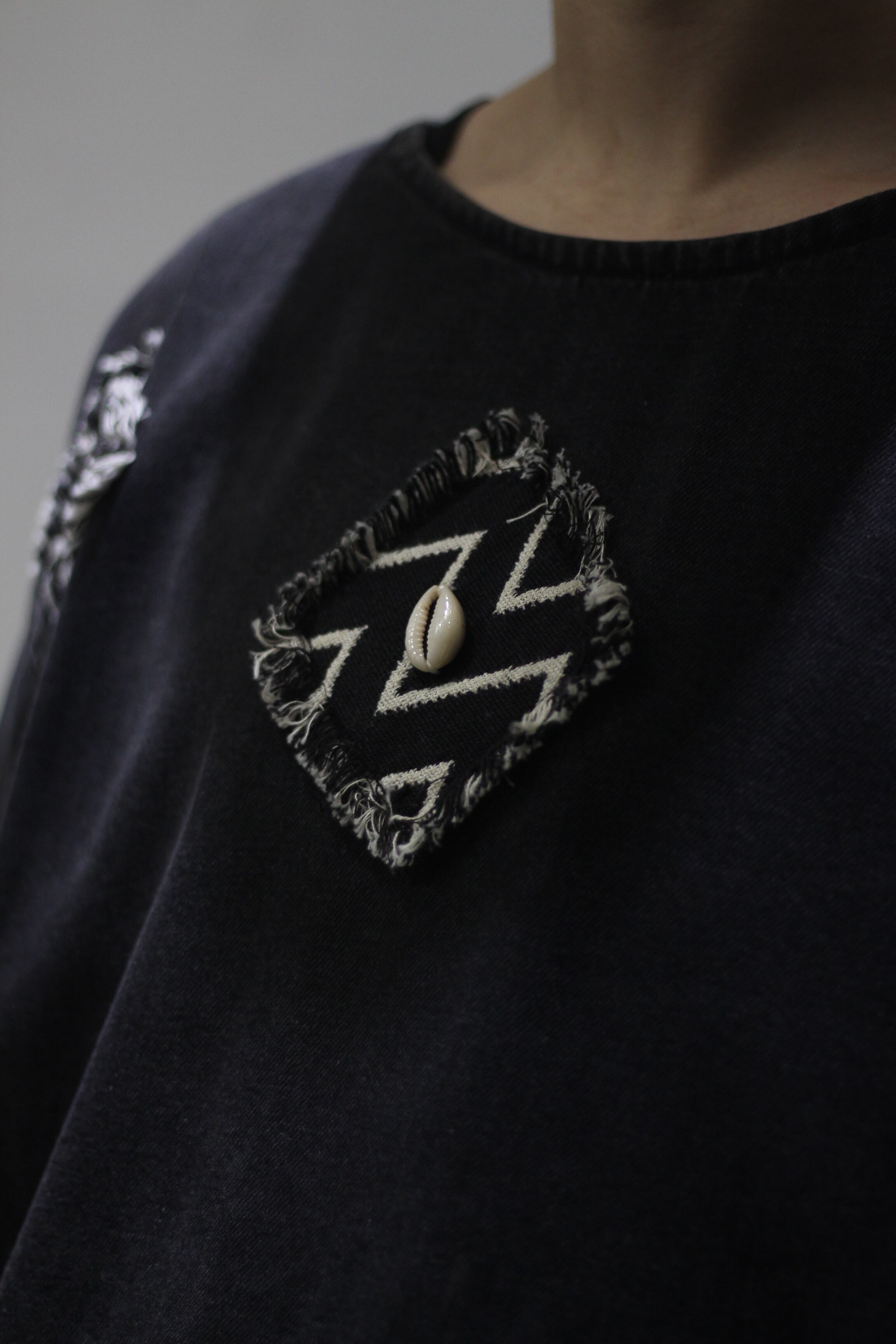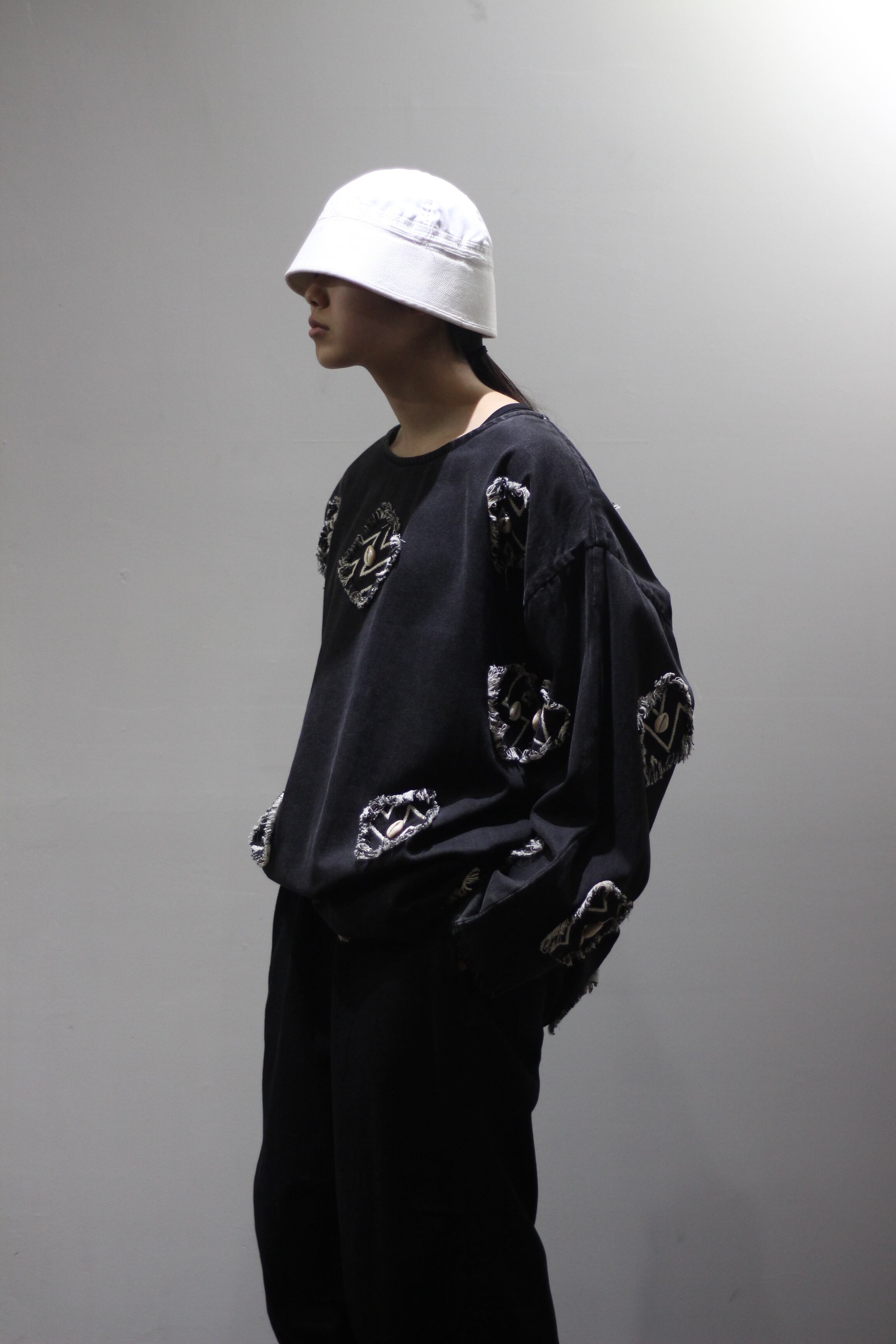 パッチとして柄入りの生地に貝を装飾したデザイン性の高いスペシャルピースです