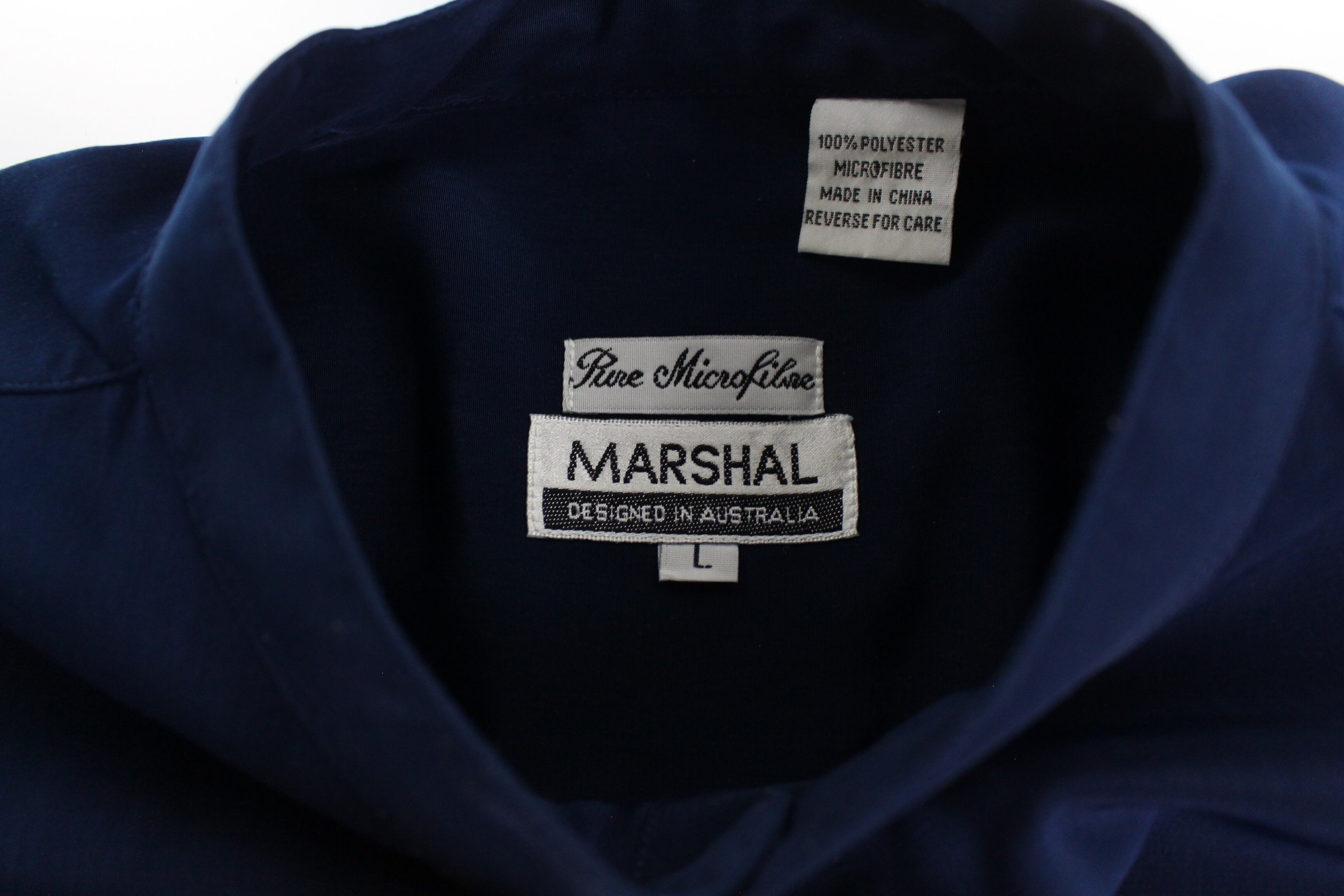 1990年代頃のバンドカラーシャツ。心地の良いpoly素材で滑らかで光沢感あって、トロミのあるモダンなファブリックが春夏に一枚で着るのが気持ちの良いシャツです