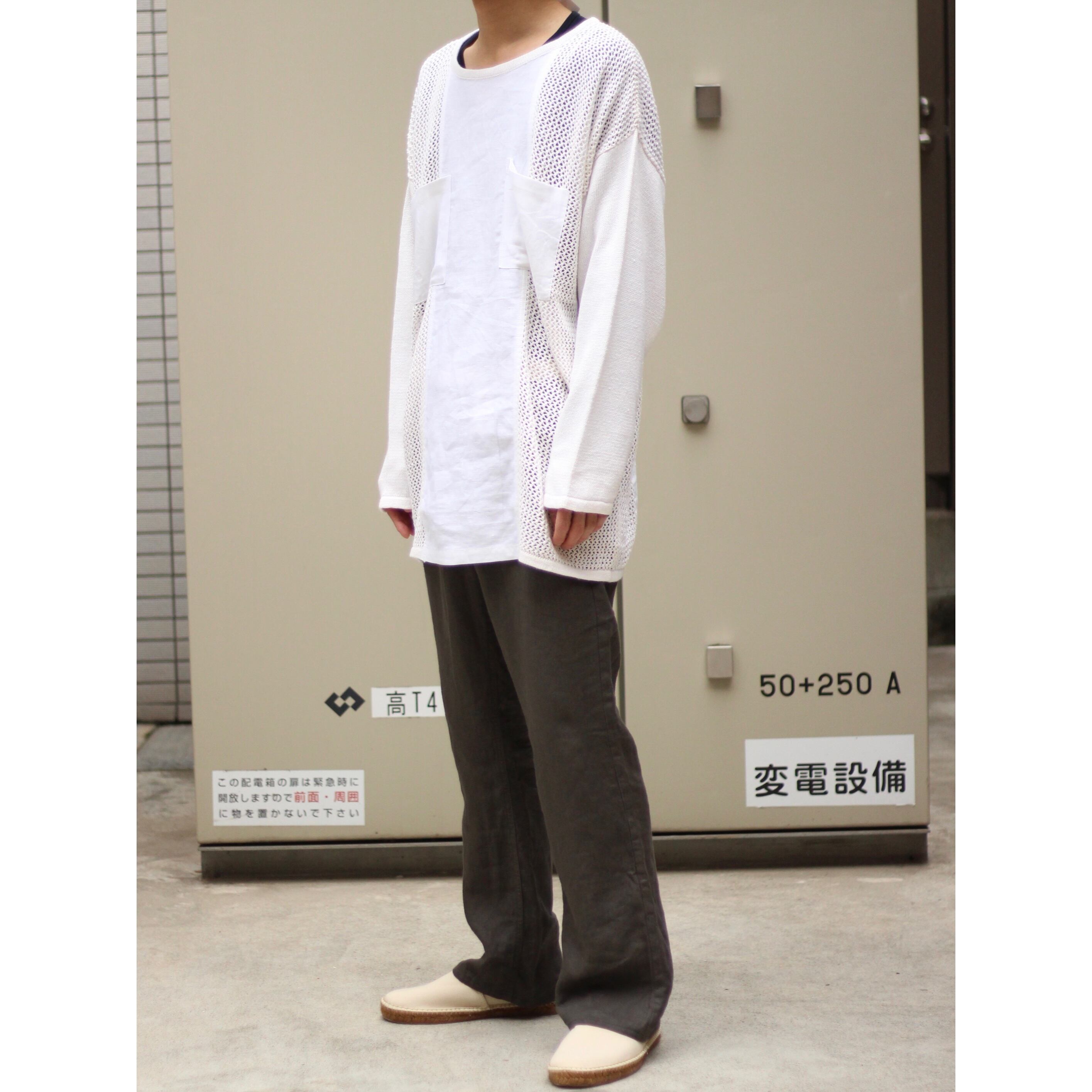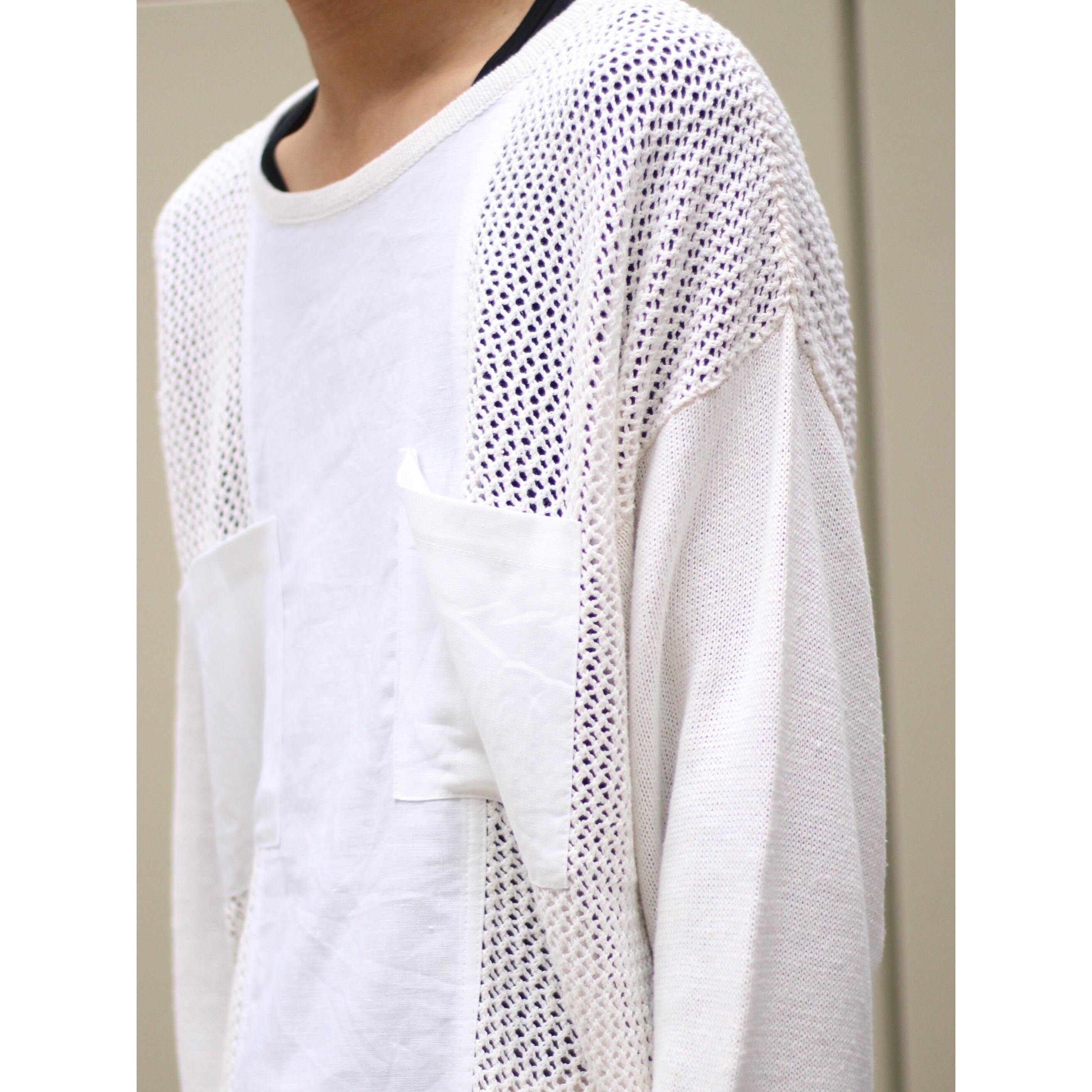 ニット、メッシュ、ガーゼファブリックがスイッチングされたサマーセーター