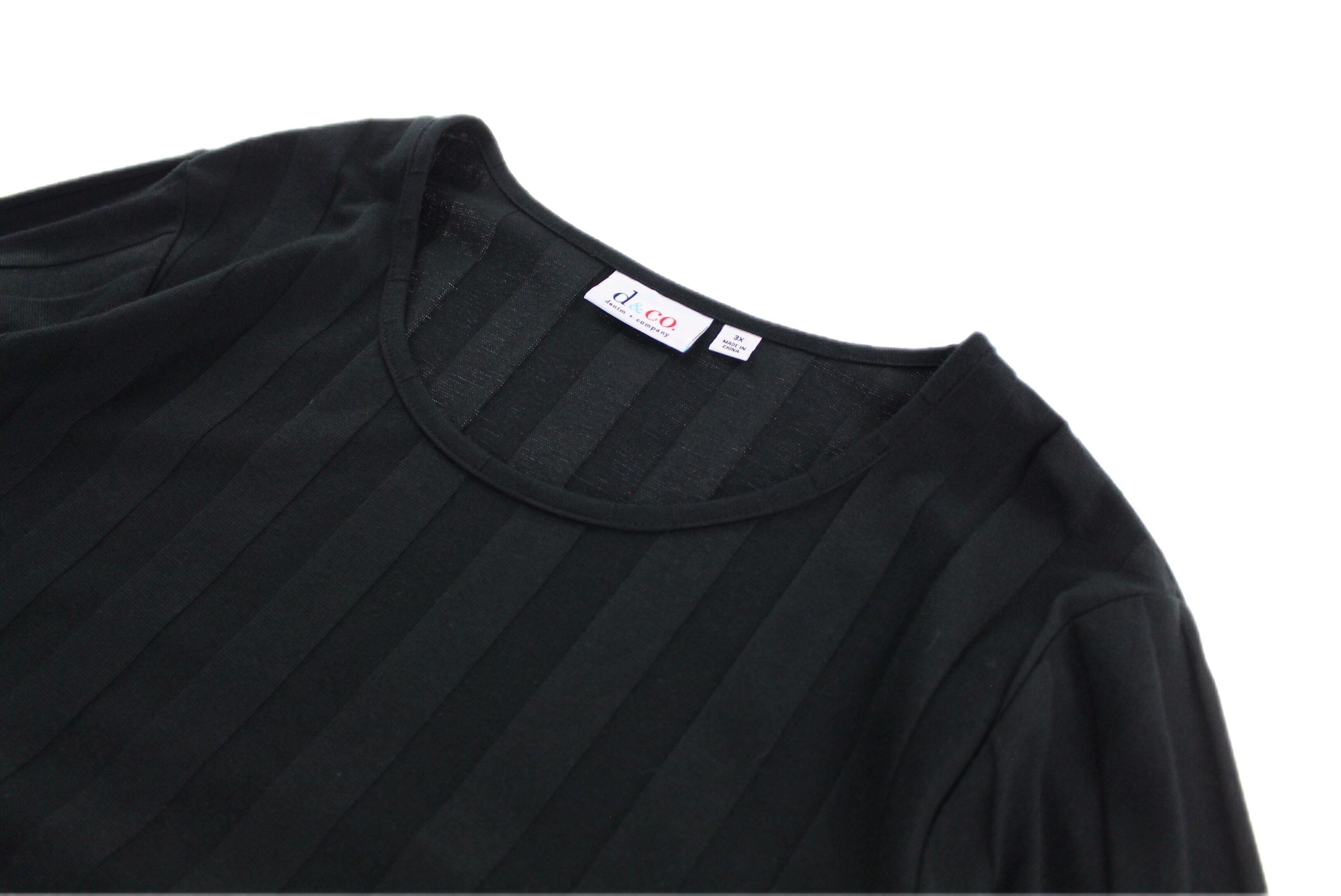 サイズ表記3Xの着丈短め身幅たっぷりなワイドショートロンT。ほんのりプリーツのような陰影のあるデザインはロンTではなかなか見ない仕様。