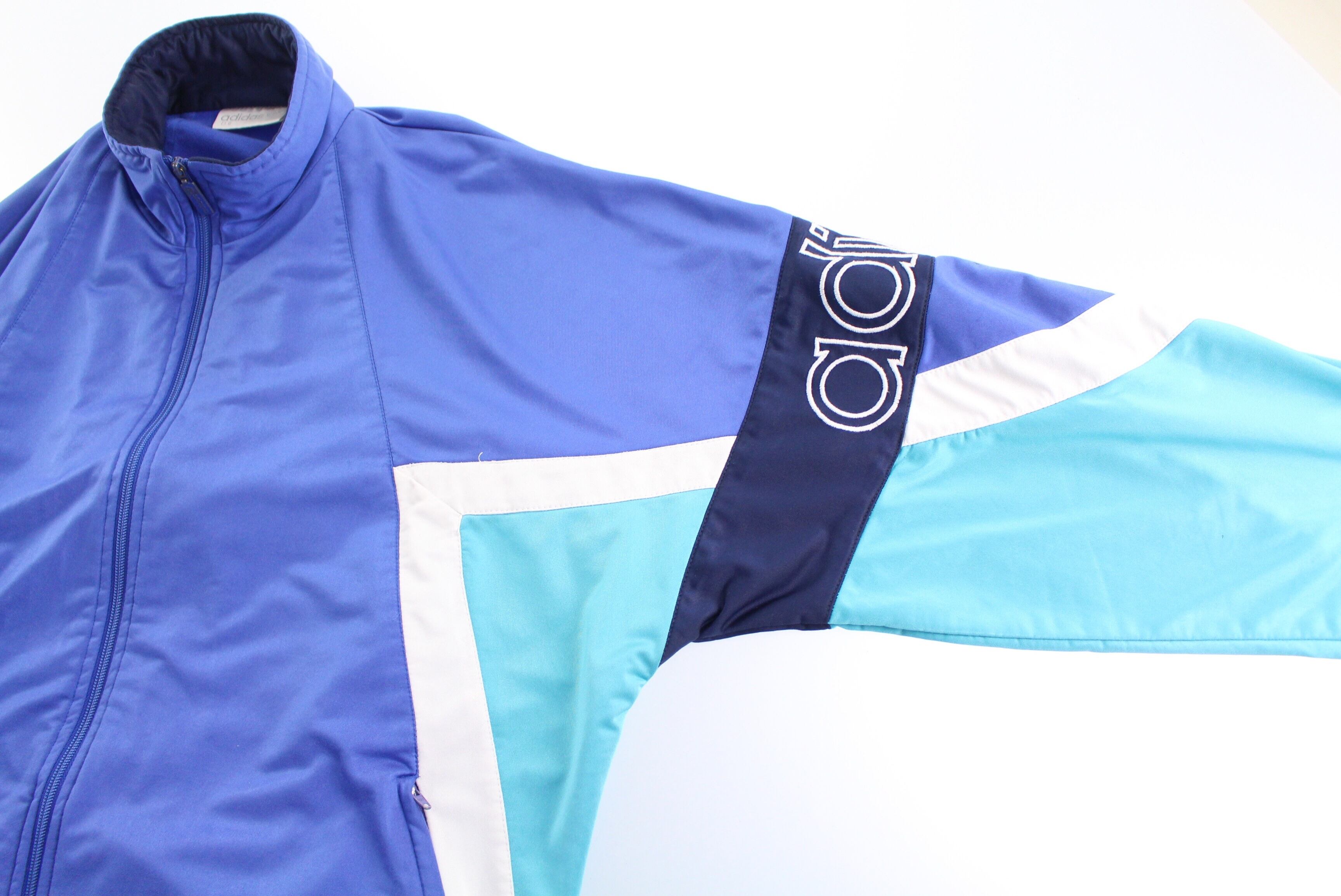 90年代ごろのビンテージadidas。センスのいい好配色にレトロなデザイン。フロントはフルジップのハイネック仕様でサイドにはジップアップスラッシュポケット付属。まさにトラックジャケットを着るなら!な素晴らしいデザイン。