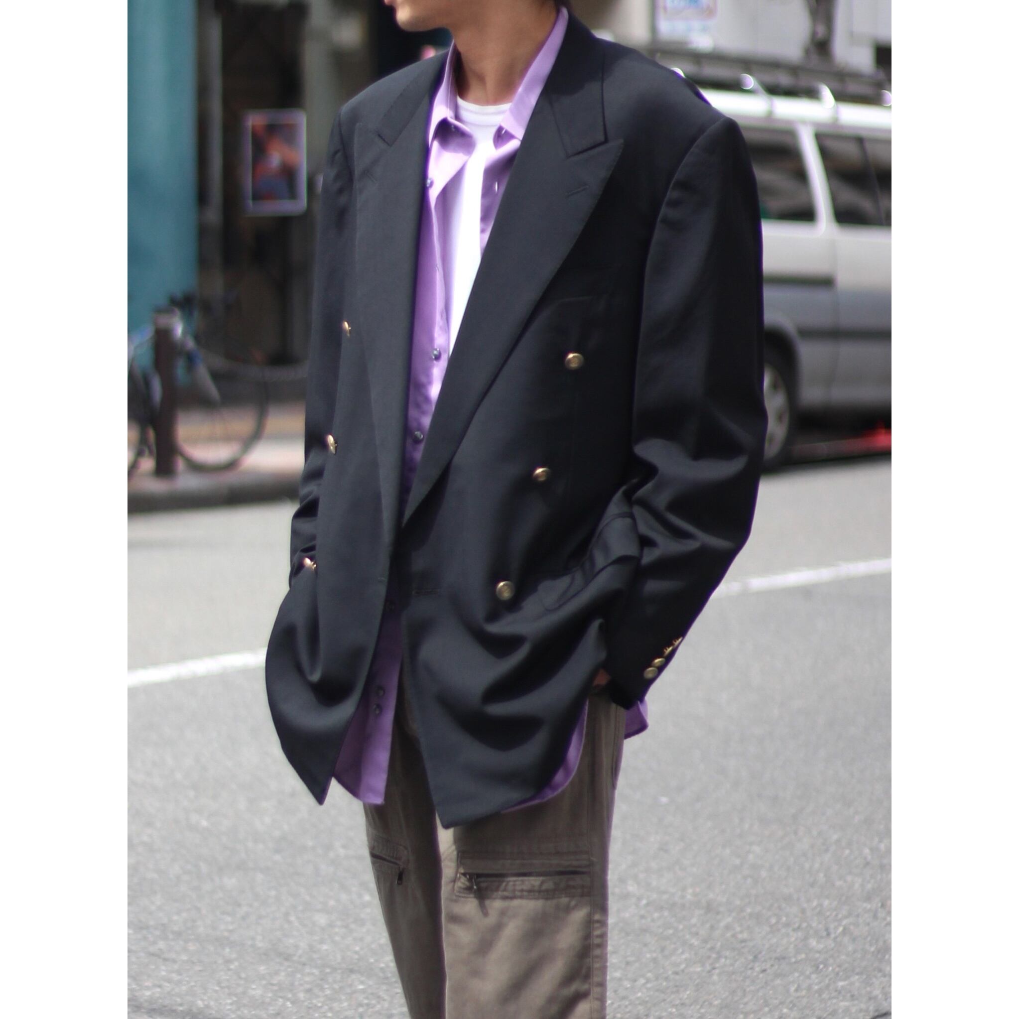 【CUBA】Ermenegildo Zegna Super 100's wool black double tailored jacket with gold button -7230-