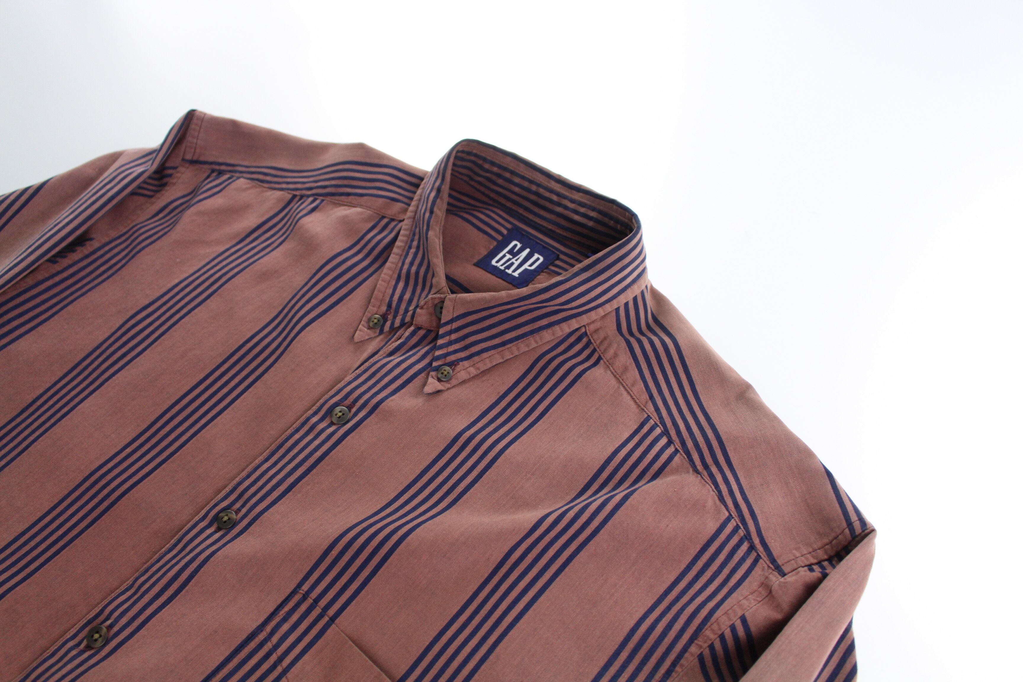 【CUBA】1990s vintage GAP all cotton stripe pattein button down shirt -7249-