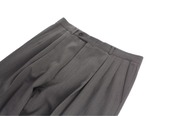 パンツは太めなウエストから来るワイドストレートのゆとりをもって作られた3タックスラックス。裾はダブルでカジュアルな仕様に◎