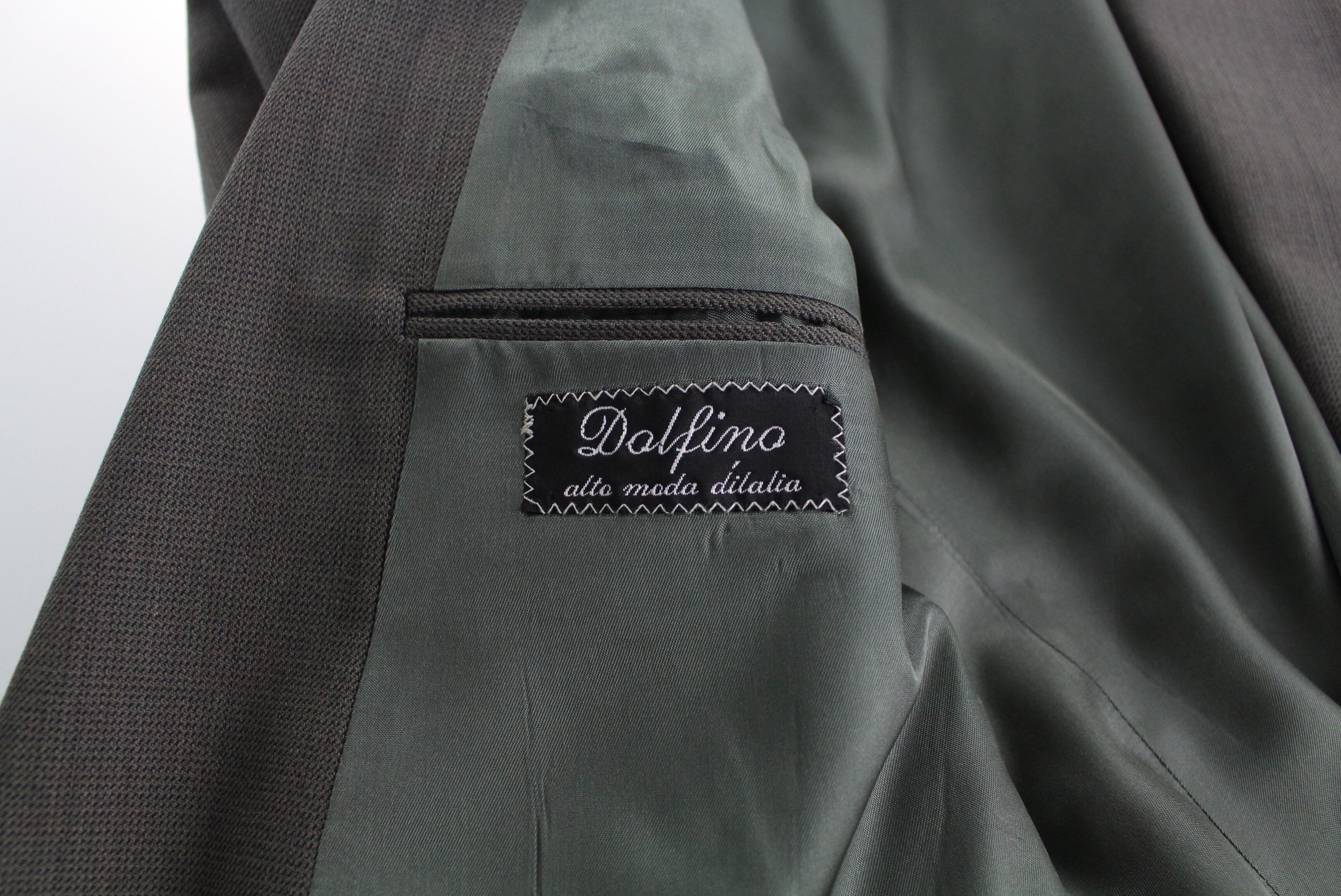 ダブルの仕立てで1ボタンのダブルブレスト仕様。渋く大人なライトオリーブのカラーリングによ〜く見ると織柄により無地ではなく柄を感じられるデザイン性高い1着。