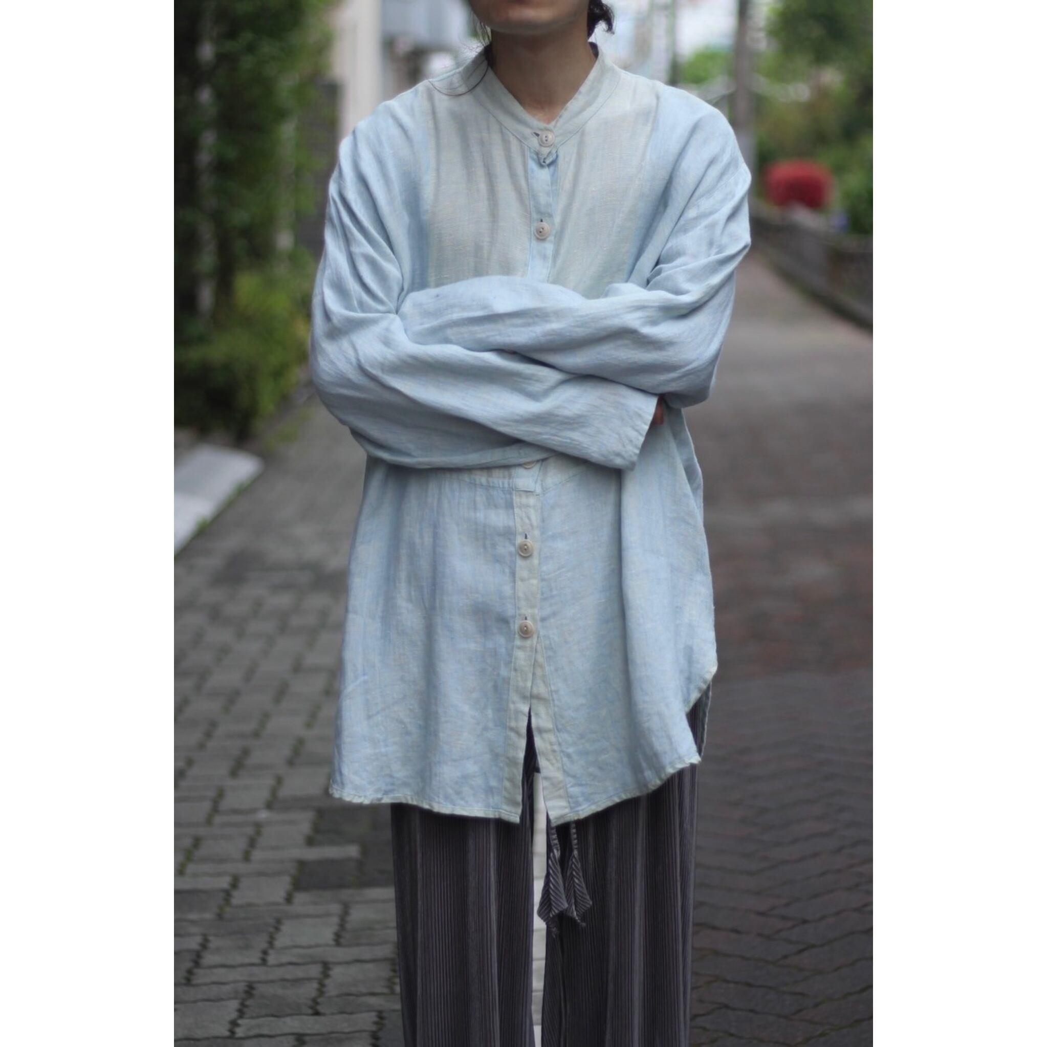【OTSU】1990's FLAX no collar design linen shirt -9964-