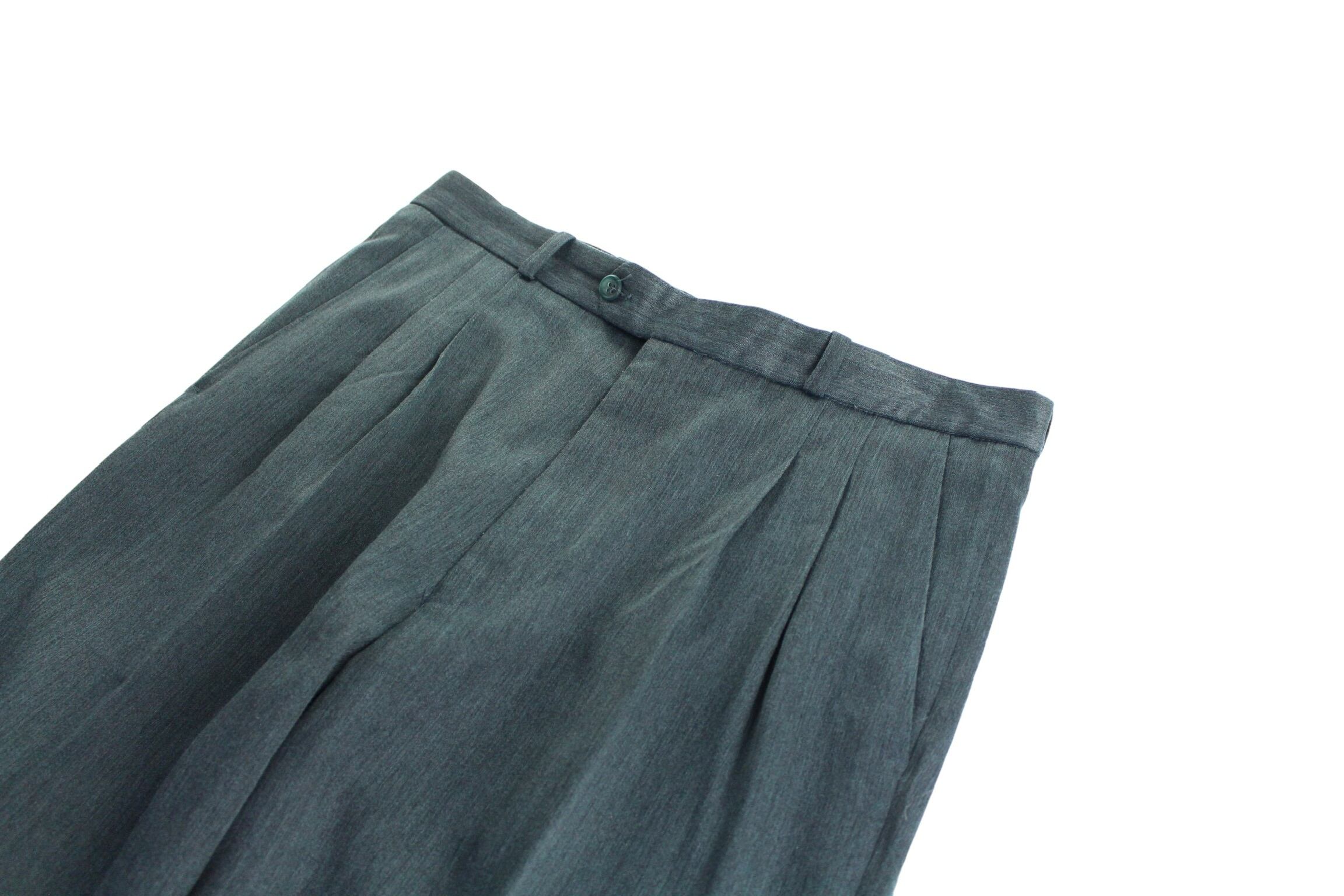 独特な艶感とブルーグリーンカラーの相性が抜群でとても上品な一本です。春らしいパンツですね☺︎