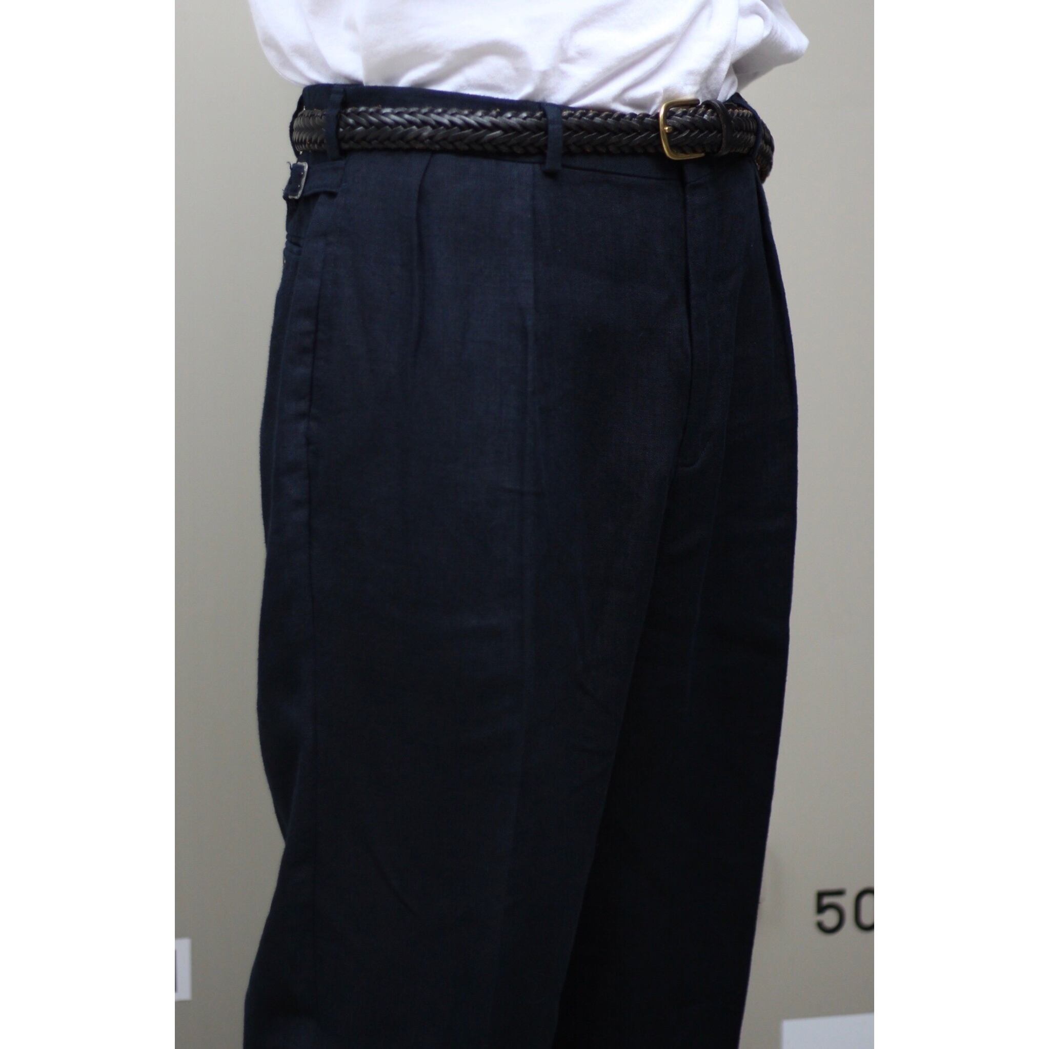 ラルフの中だとトップスと比べて圧倒的に球数が少ないパンツ。その中でも夏時期に履きやすいリネンスラックスを入荷。