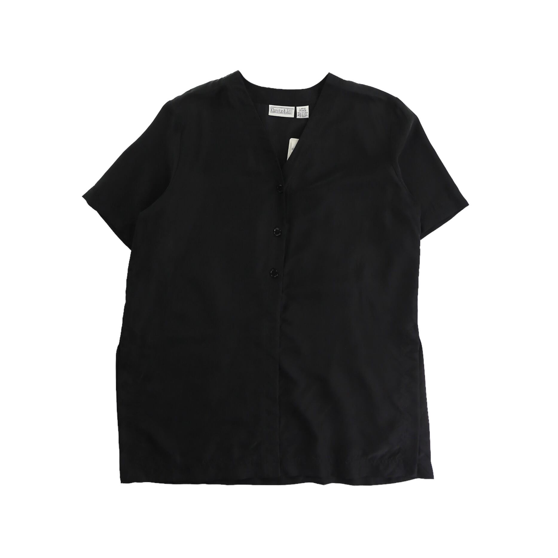 【OTSU】deadstock S/S 100% silk design no collar shirt-10067-