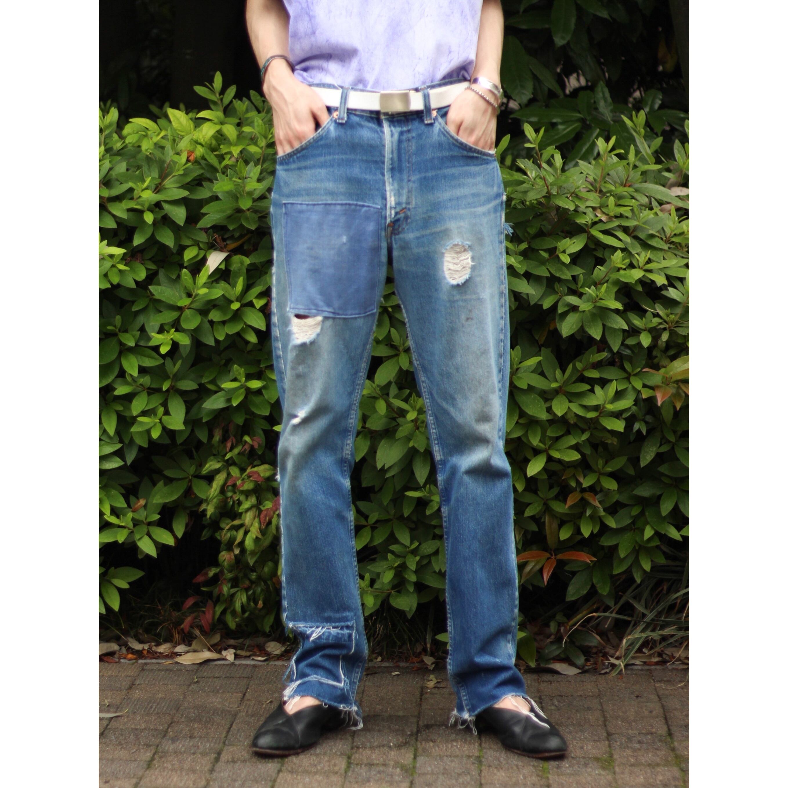 【CUBA】1980s vintage Levi's 505 artistic repaired denim pant made in USA -7325-