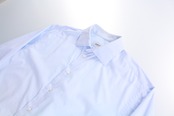 春夏に着たい淡いサックスブルーの涼しげなクリーンな色味に素材もサラッとした清涼感ある薄手なオールコットン生地。
