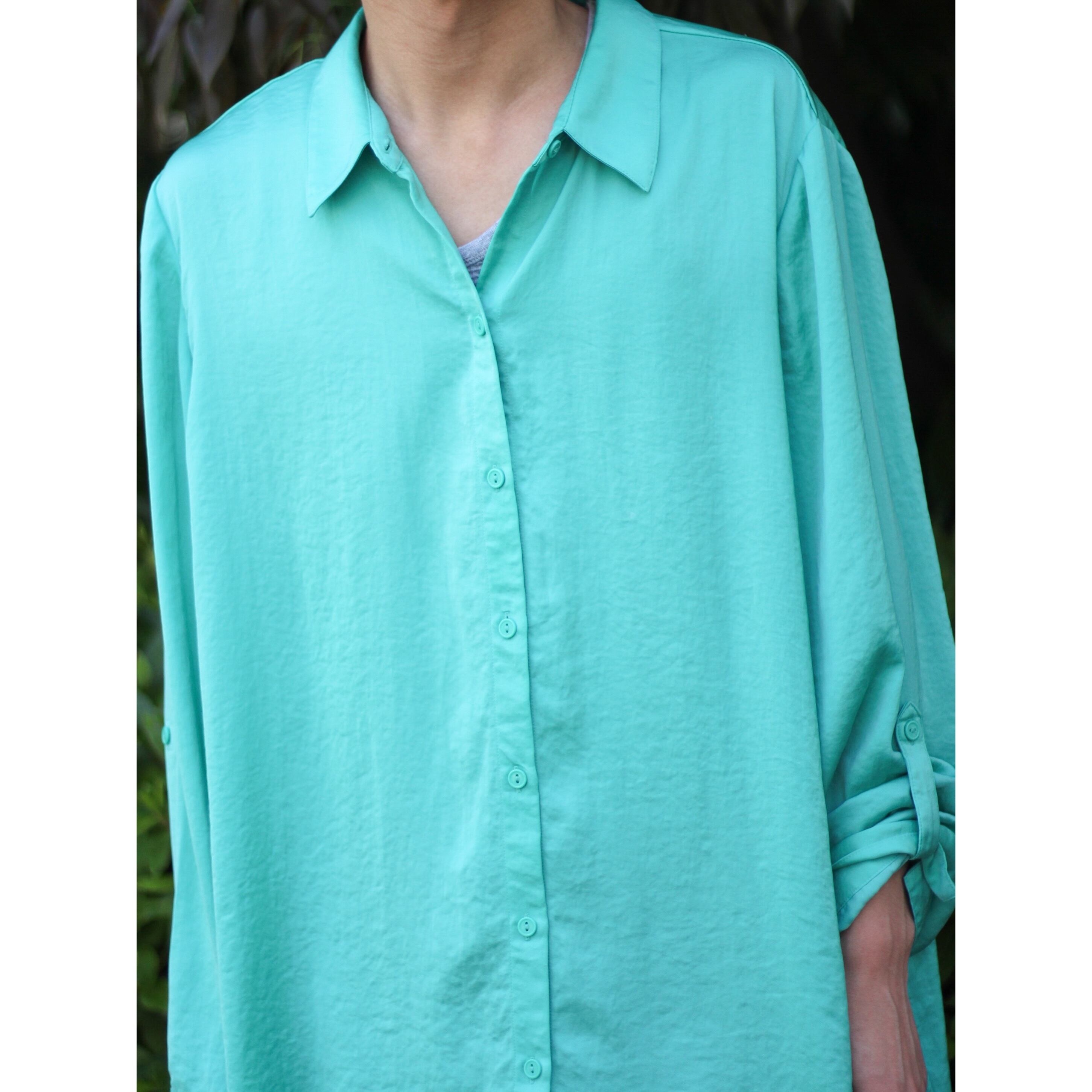 カラーリングは真夏でも涼しげなエメラルドグリーンカラー。ビビットというよりは素材感からかまろやかな色味ですので着やすいです