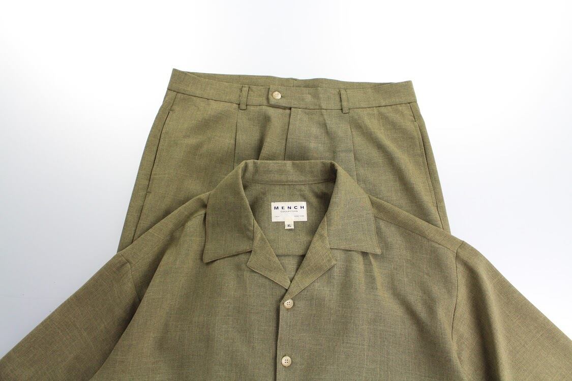 【CUBA】MENCH S/S 2 piece open-collar shirt & wide pant set-up -7380-