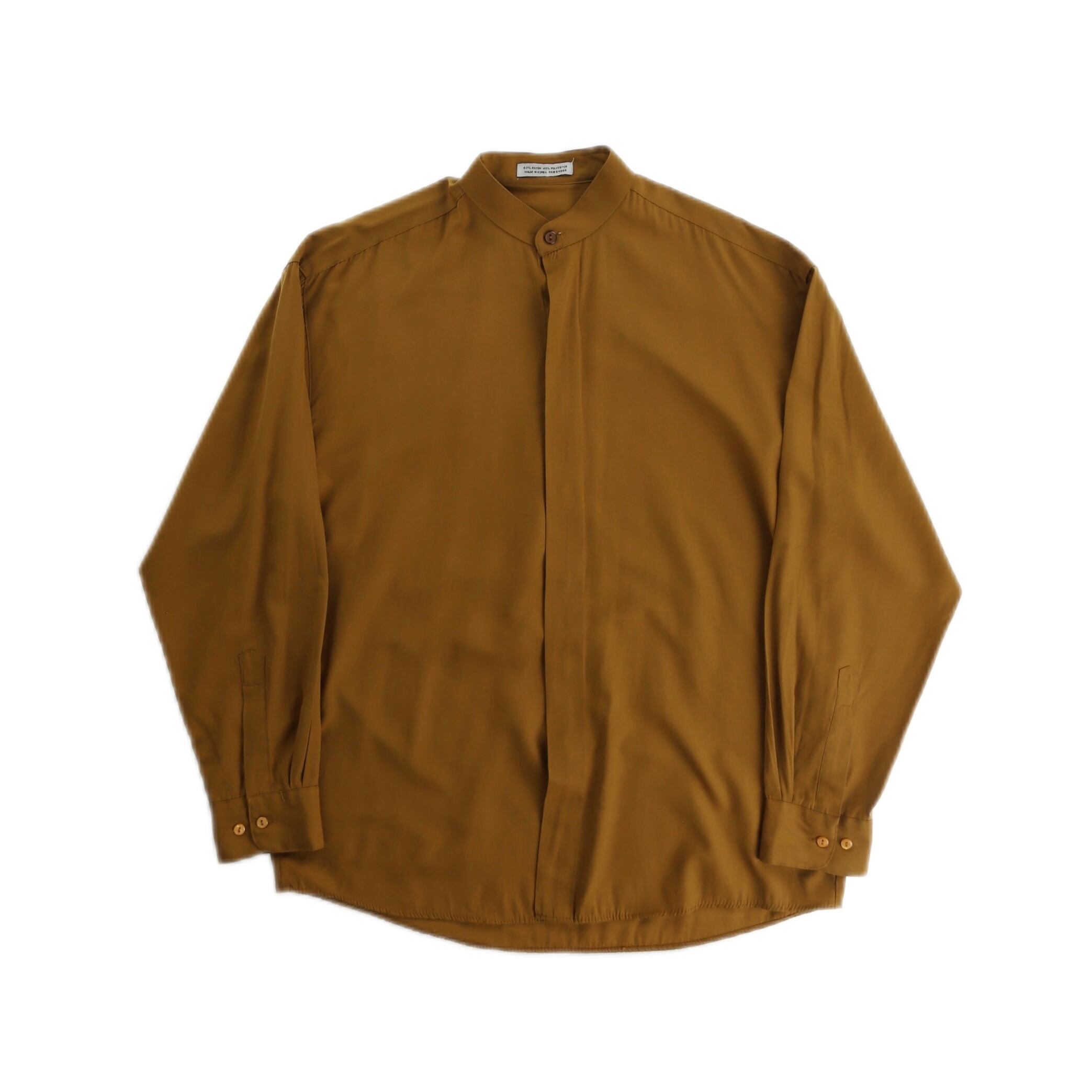 【CUBA】1990s fly front design rayon band-collar shirt -7388-