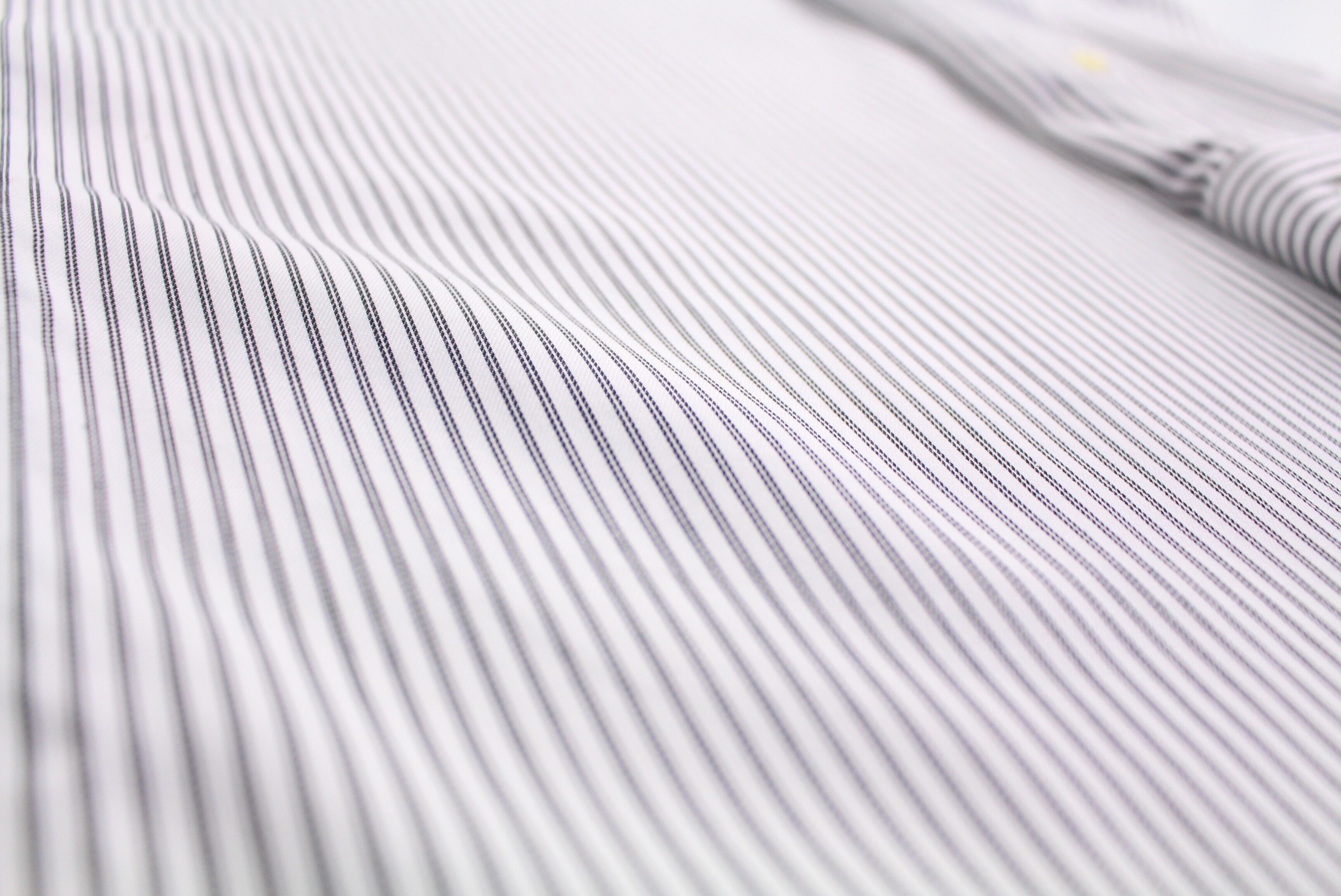 こちらは珍しいボタンダウン仕様ではないプレーンな襟。ワイドなカラーがストライプに映えます☺︎