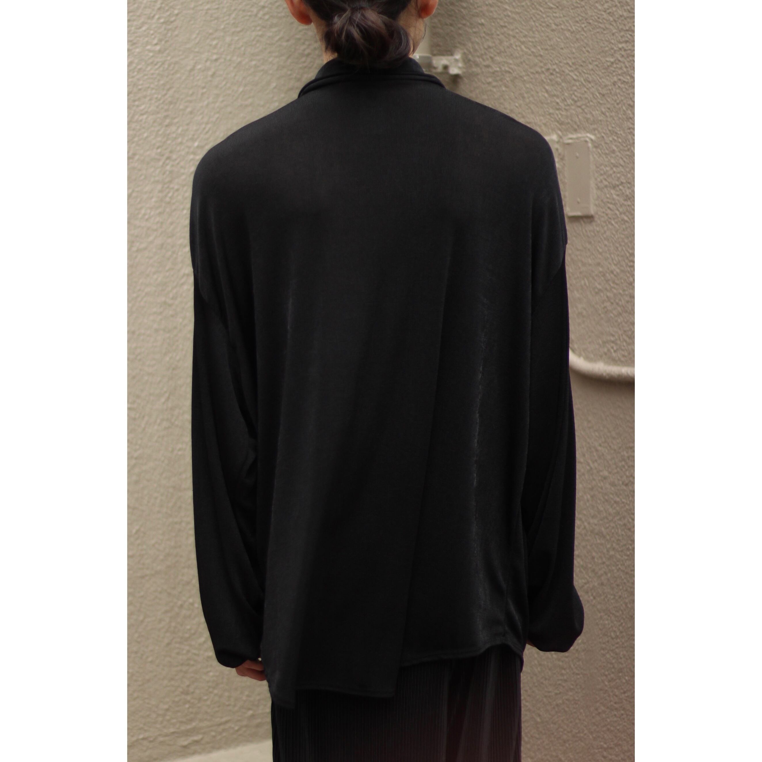 ツヤのある生地感も魅力的で雰囲気は上品に高級感を感じられるシャツ。サイジングもオーバーなので1枚でも羽織りにも使えます☺︎