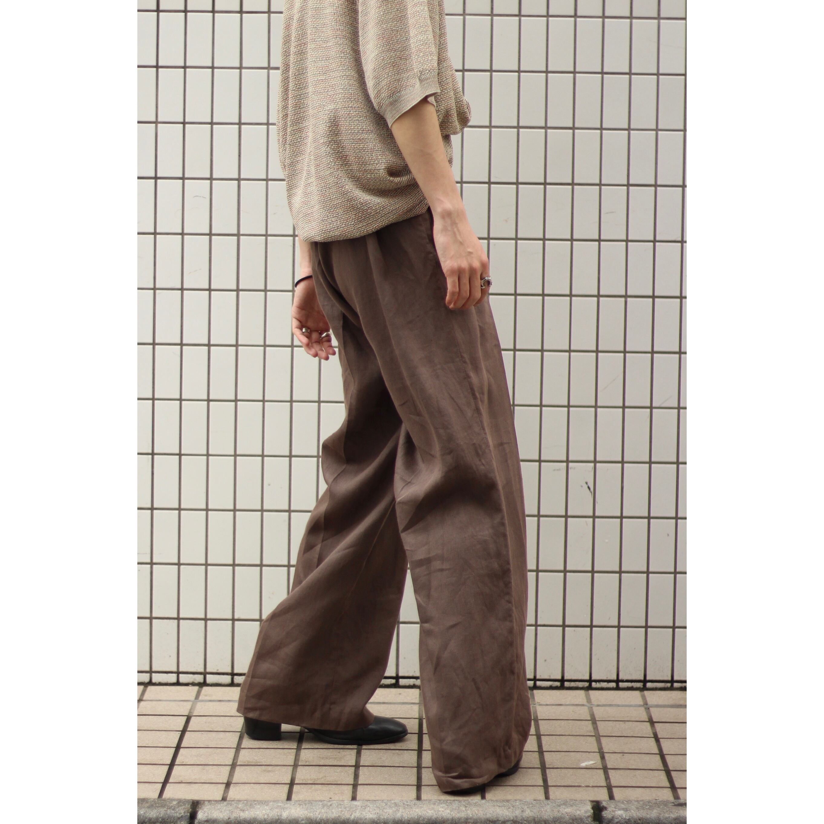 ワイドでテーパードすることなくストレートに落ちるようなシルエット。動きのあるリネンファブリックで生地の滑らかさを感じていただける涼しげなパンツです。落ち着いたブラウンカラーで合わせやすいカラーリングも◎