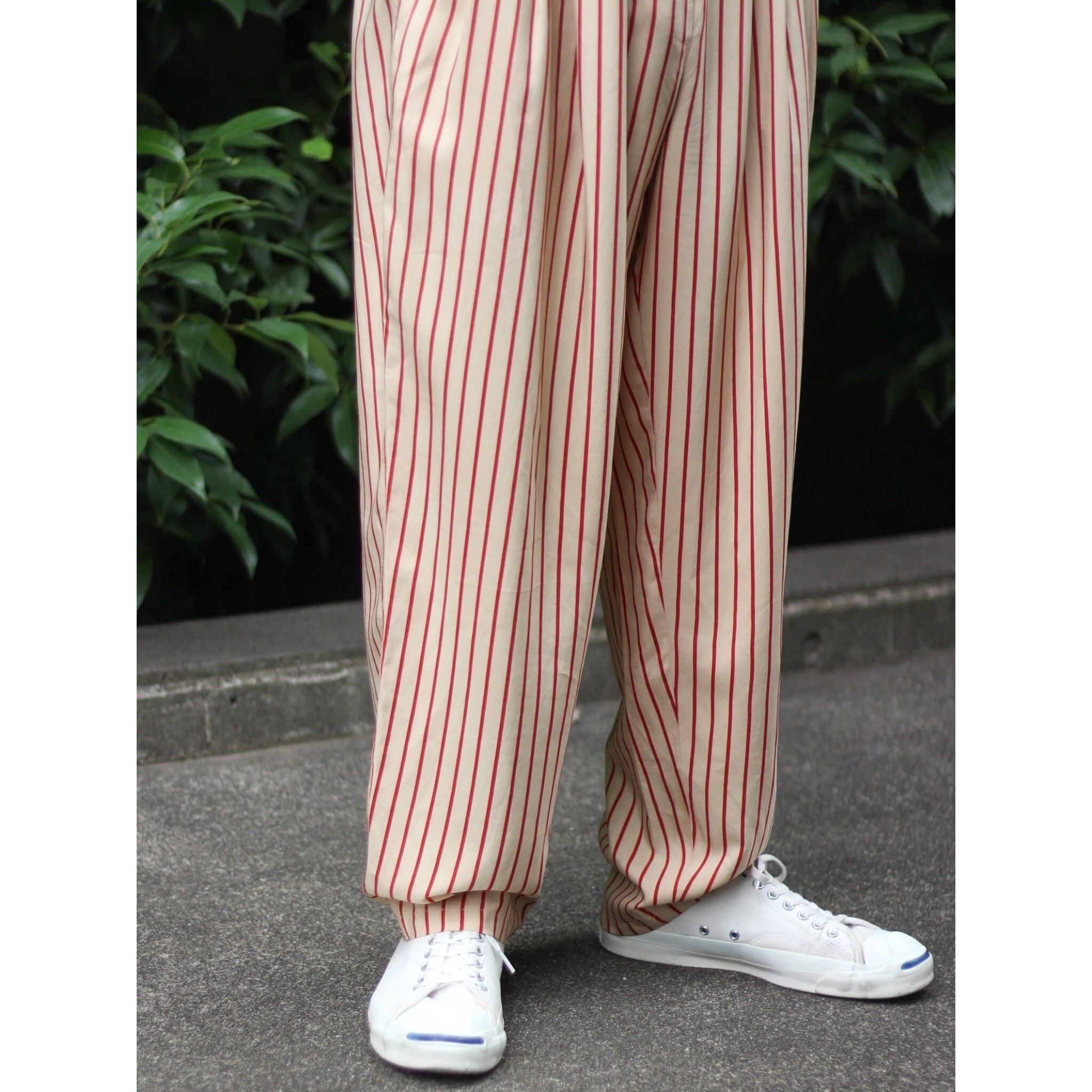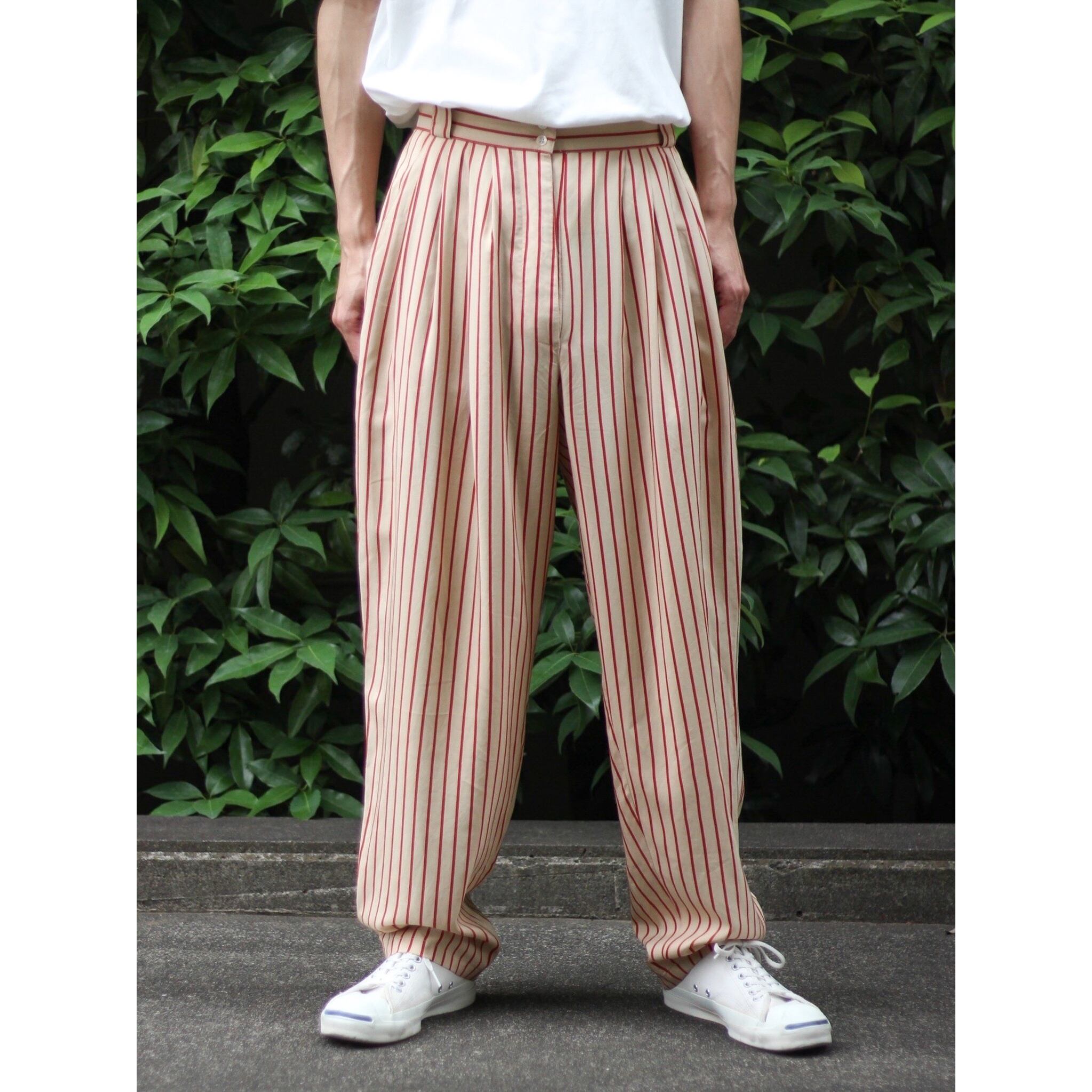 【CUBA】1990s 100%silk stripe 3-tuck wide tapered slacks -7424-
