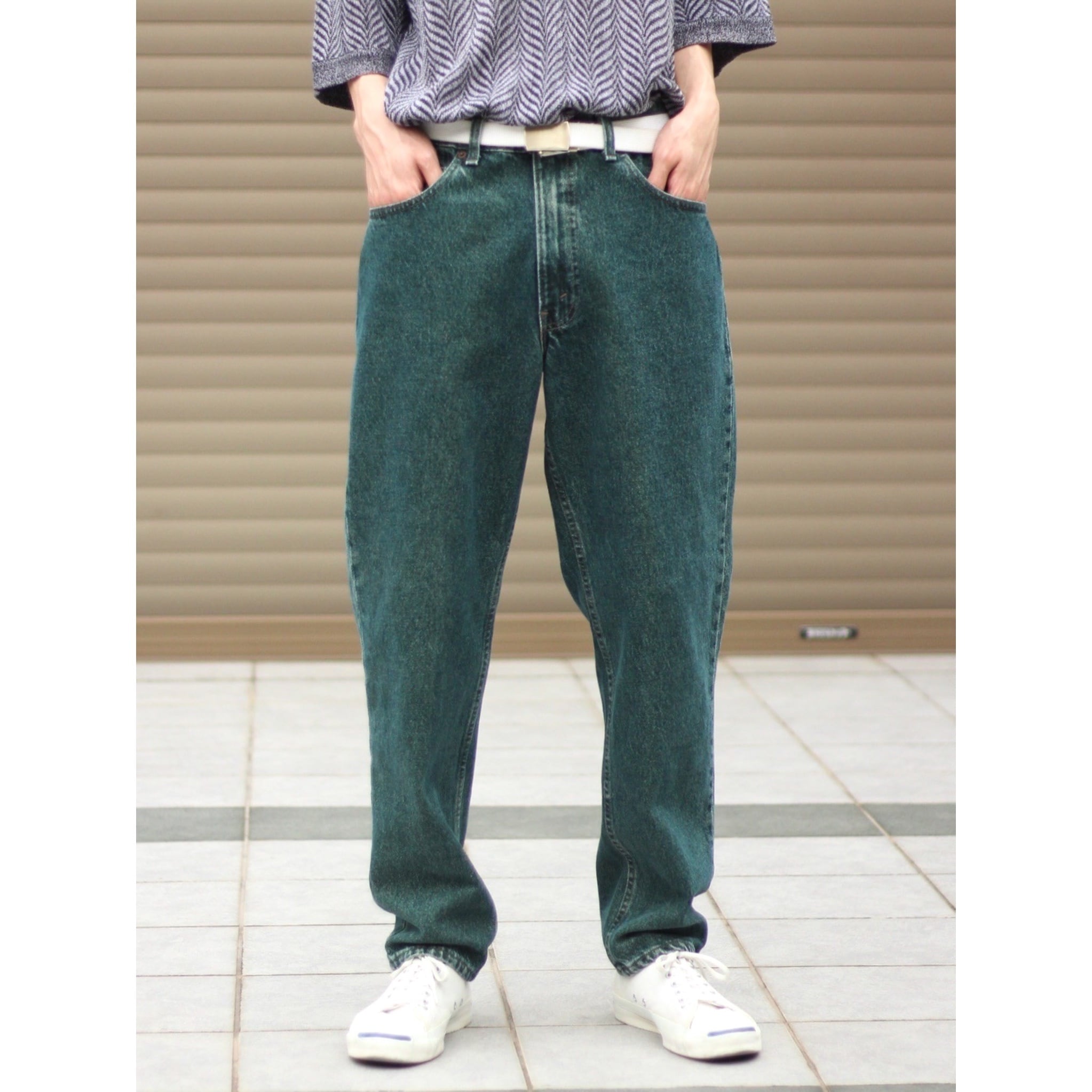【CUBA】1990s vintage LEVI'S 550 green yarn dyed denim pant made in USA -7425-