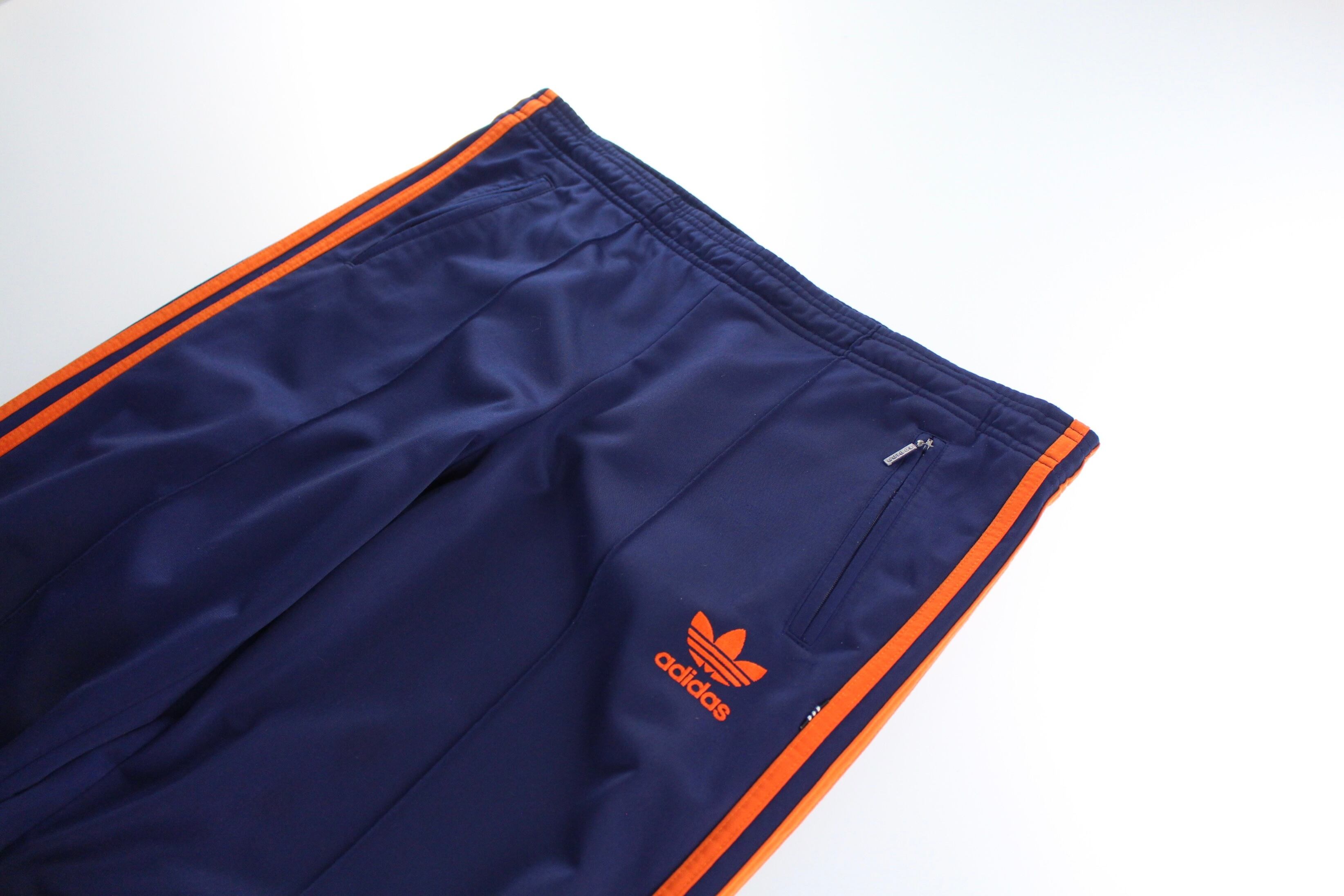 ネイビーボディにサイドに入るブランドを象徴する三本ライン、レアなオレンジカラーってところが最高です☺︎