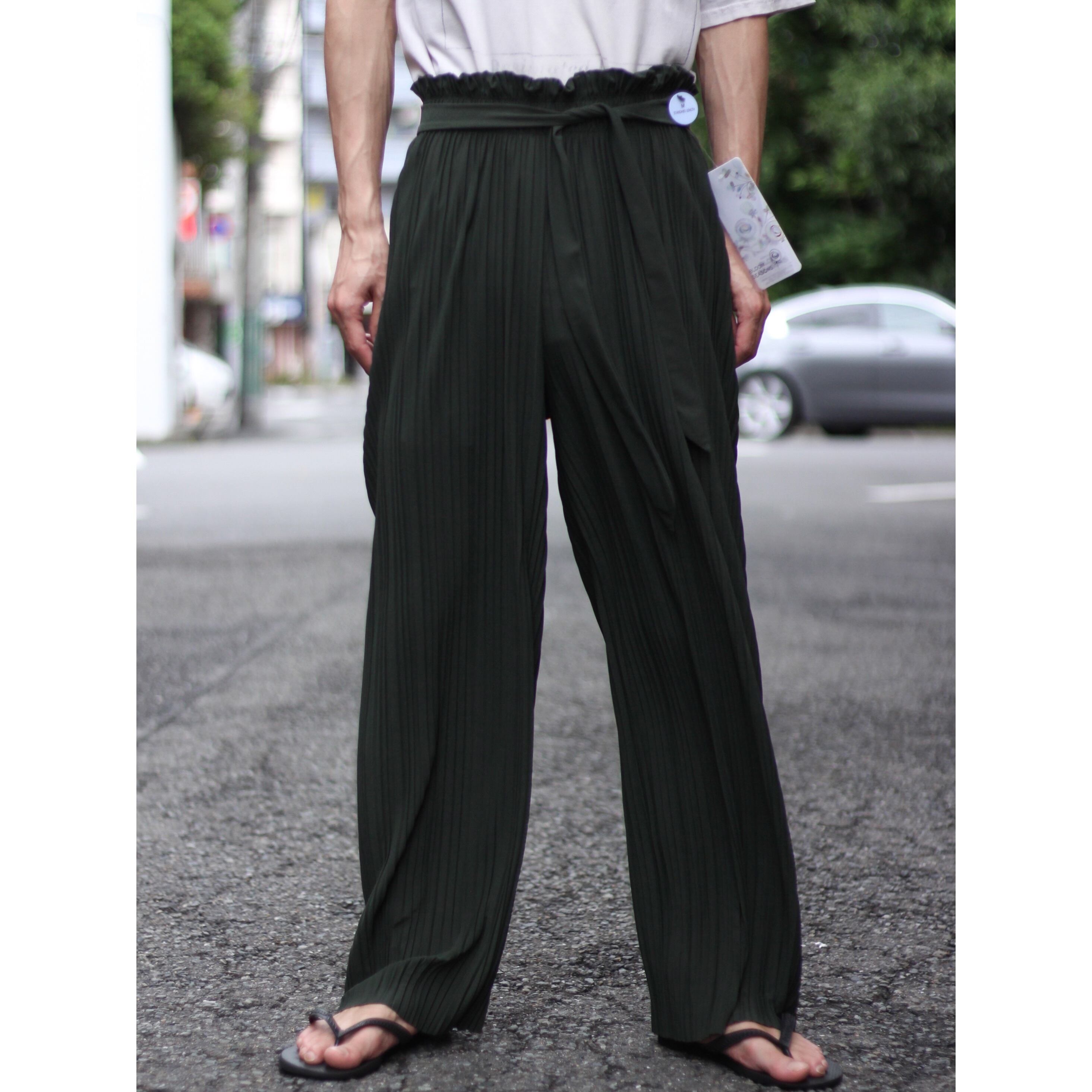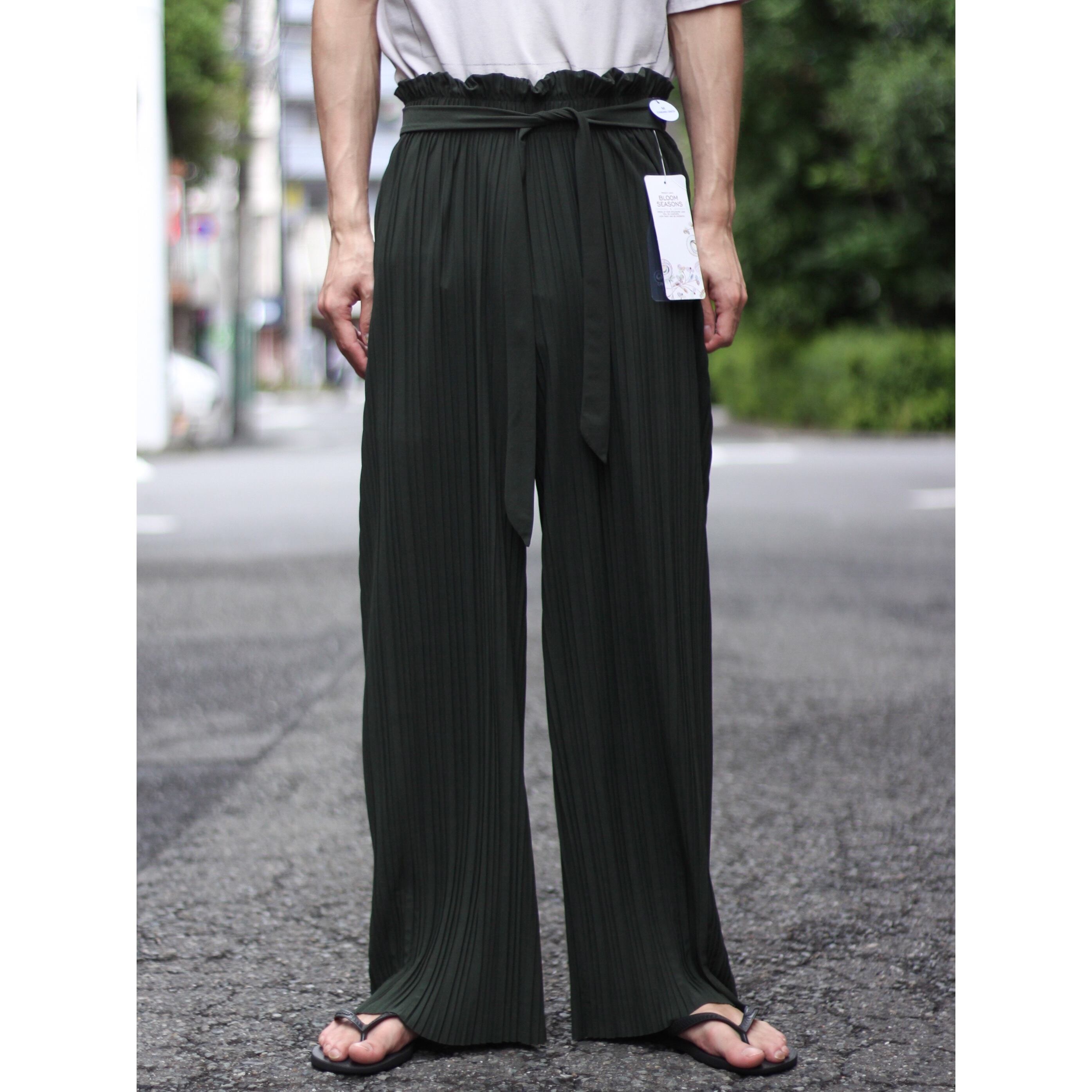 【CUBA】DEADSTOCK olive color belted pleats wide easy pant -7431-