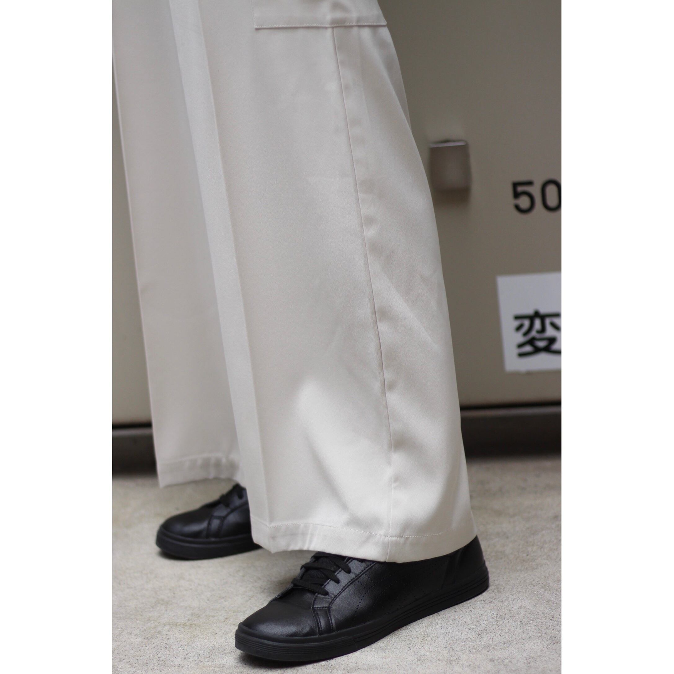 両サイドにはポケットが付き,もも付近にはカーゴポケットも完備。裾までストンっと落ちるとにかくワイドなシルエット。