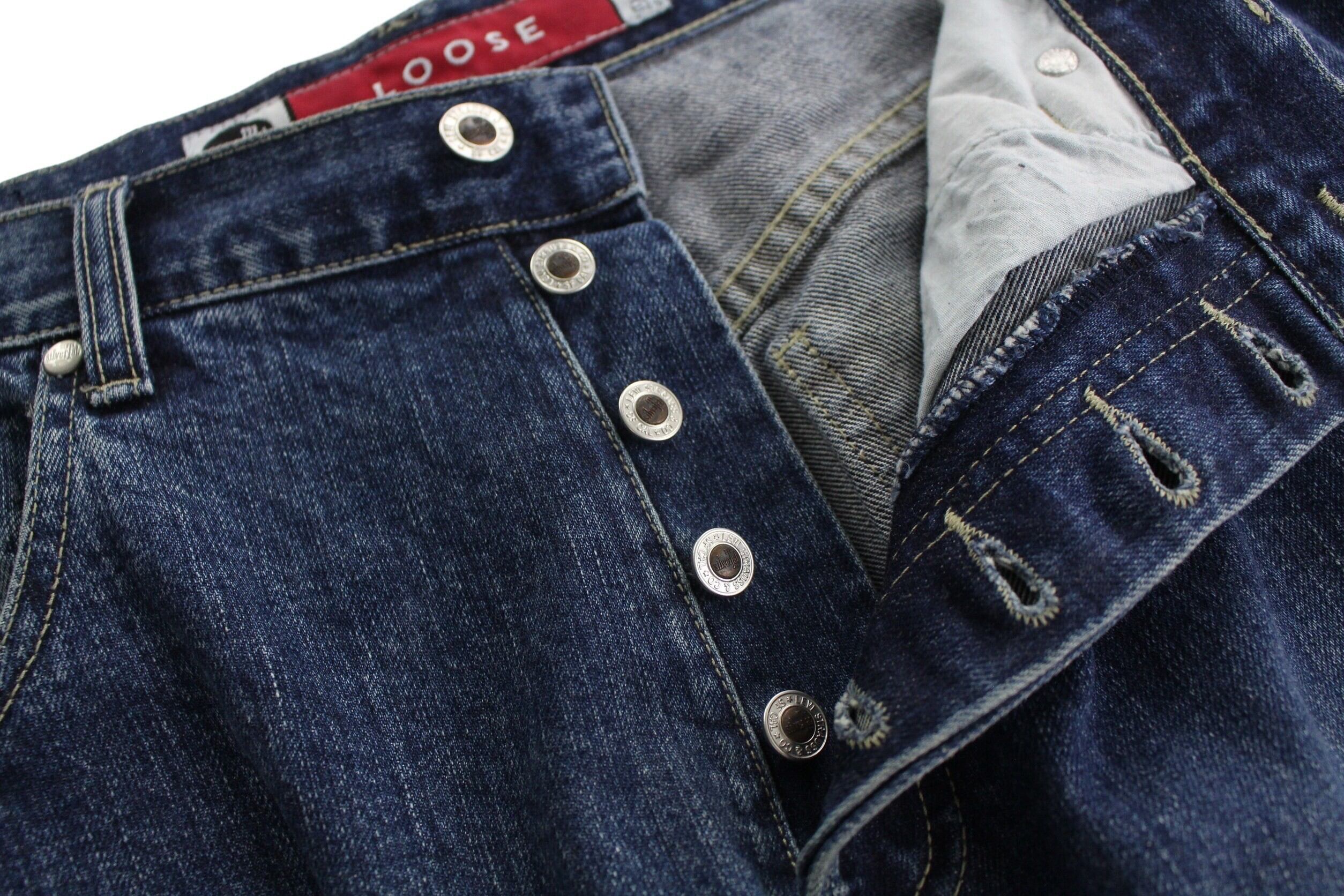 シルエットはワイドストレートタイプになっており長年愛用できるコットンファブリックで裾が雑にカットオフされてる感じが最高にカッコ良すぎます。