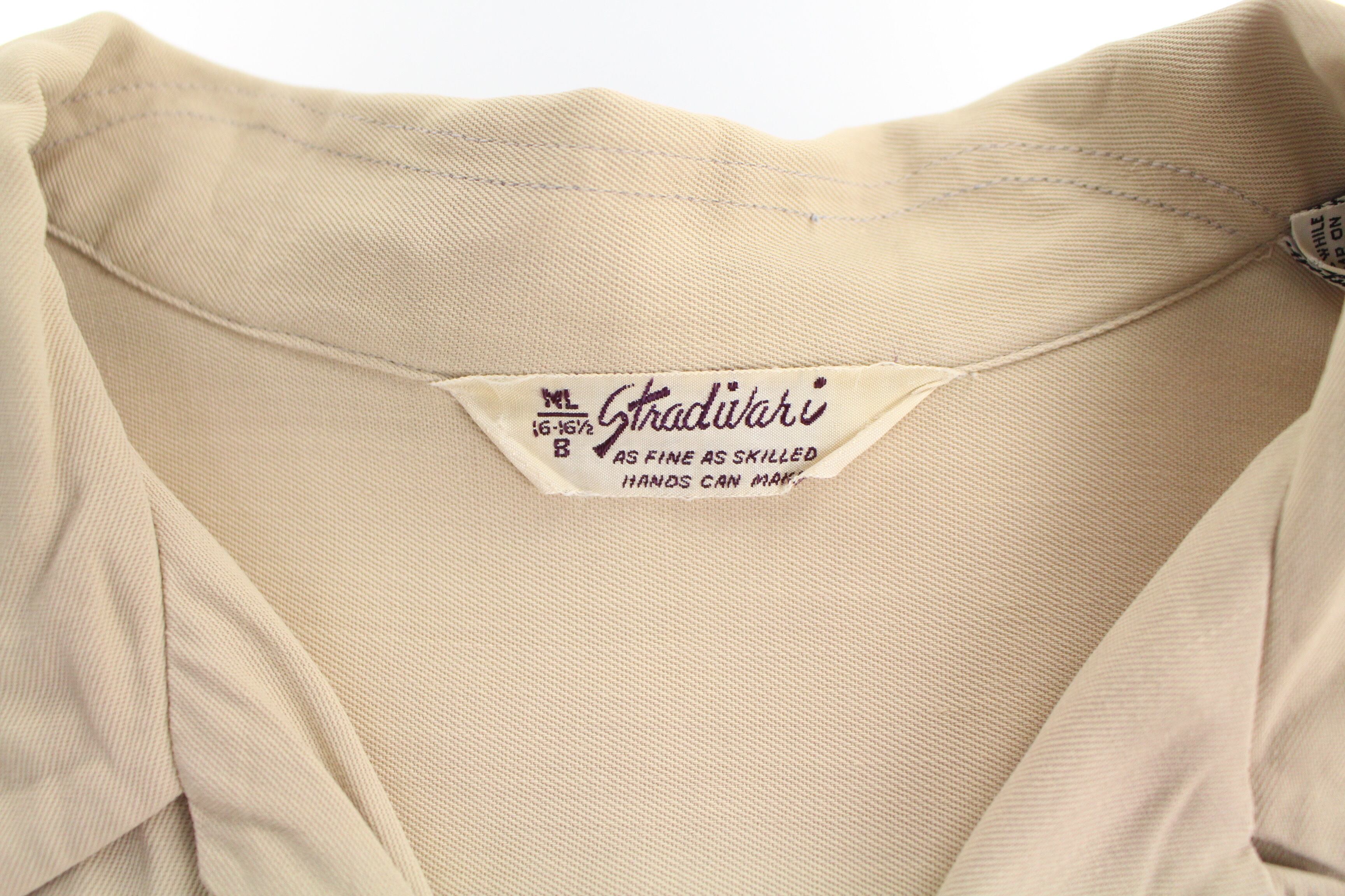 50sより一発古めな、40年代特有のロングポイントと呼ばれる弧を描いた襟の形、首元はループカラー仕様のオープンカラー、ダブルポケット、古くて良いボタン。。