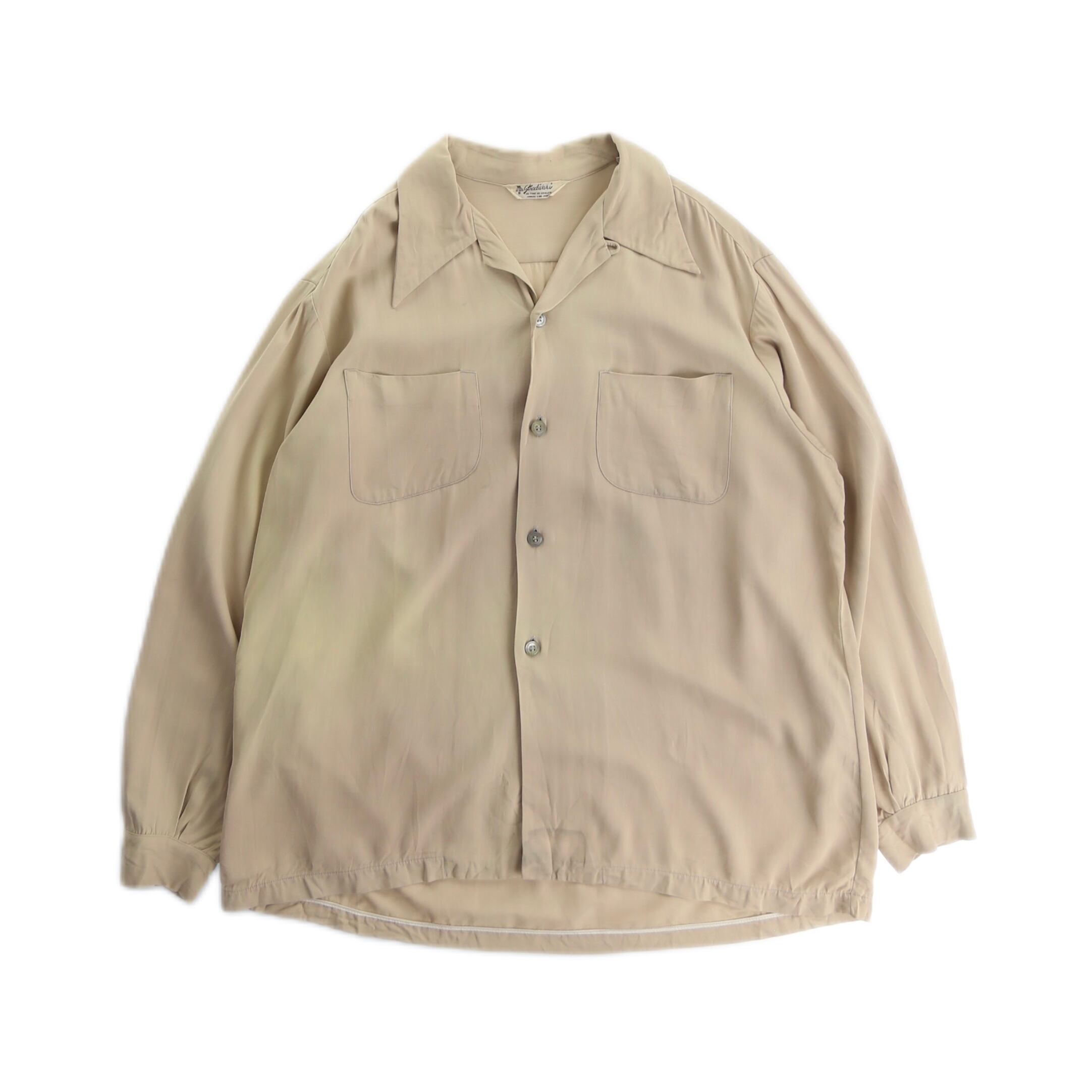 【CUBA】1940s vintage rayon gabardine open-collar shirt / big sized !!! -7448-