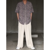 【CUBA】1990s "CREME DE SILK" silk × rayon wide straight tuck slacks -7466-