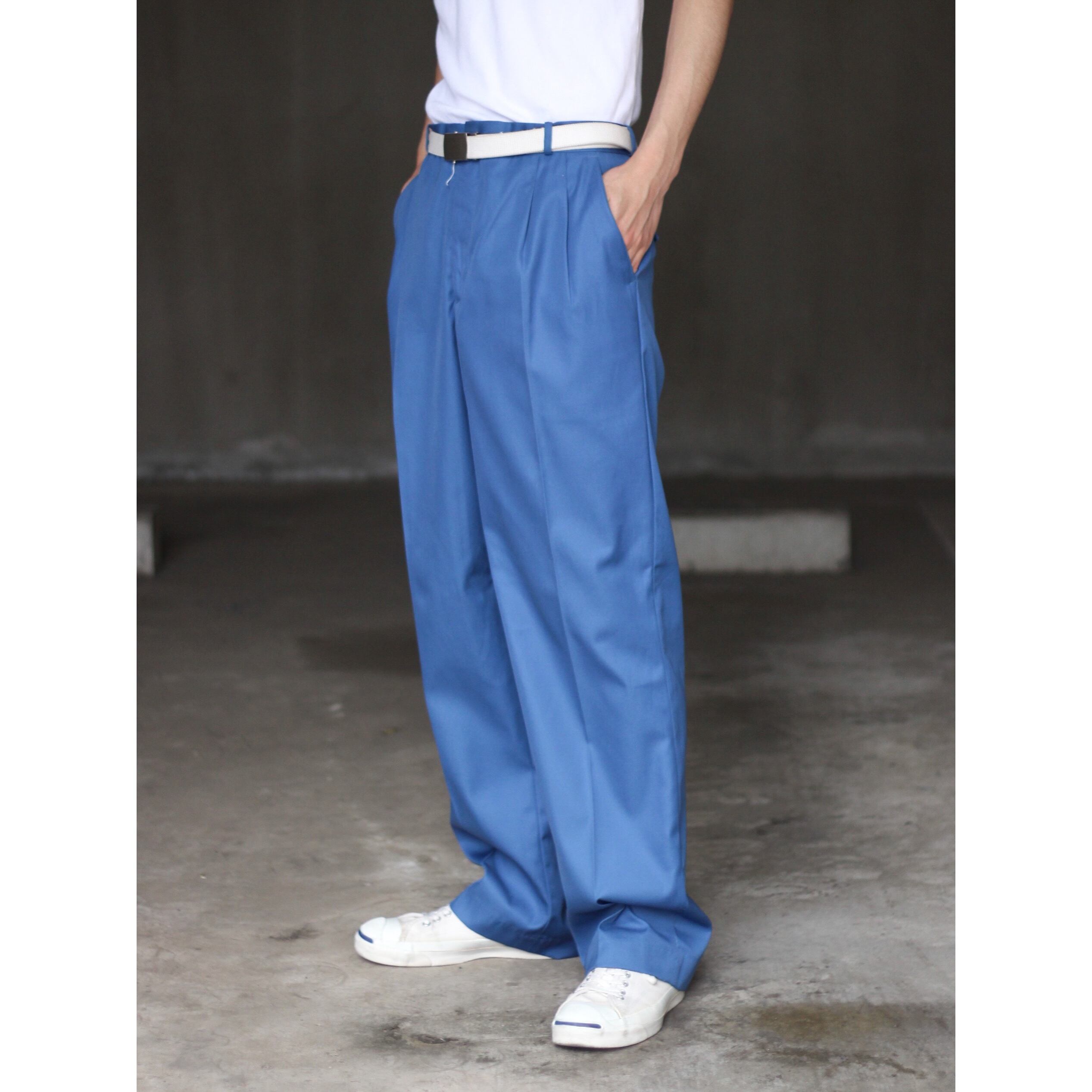 【CUBA】1990s MADISON AVENUE blue color 2-tuck wide slacks -7468-