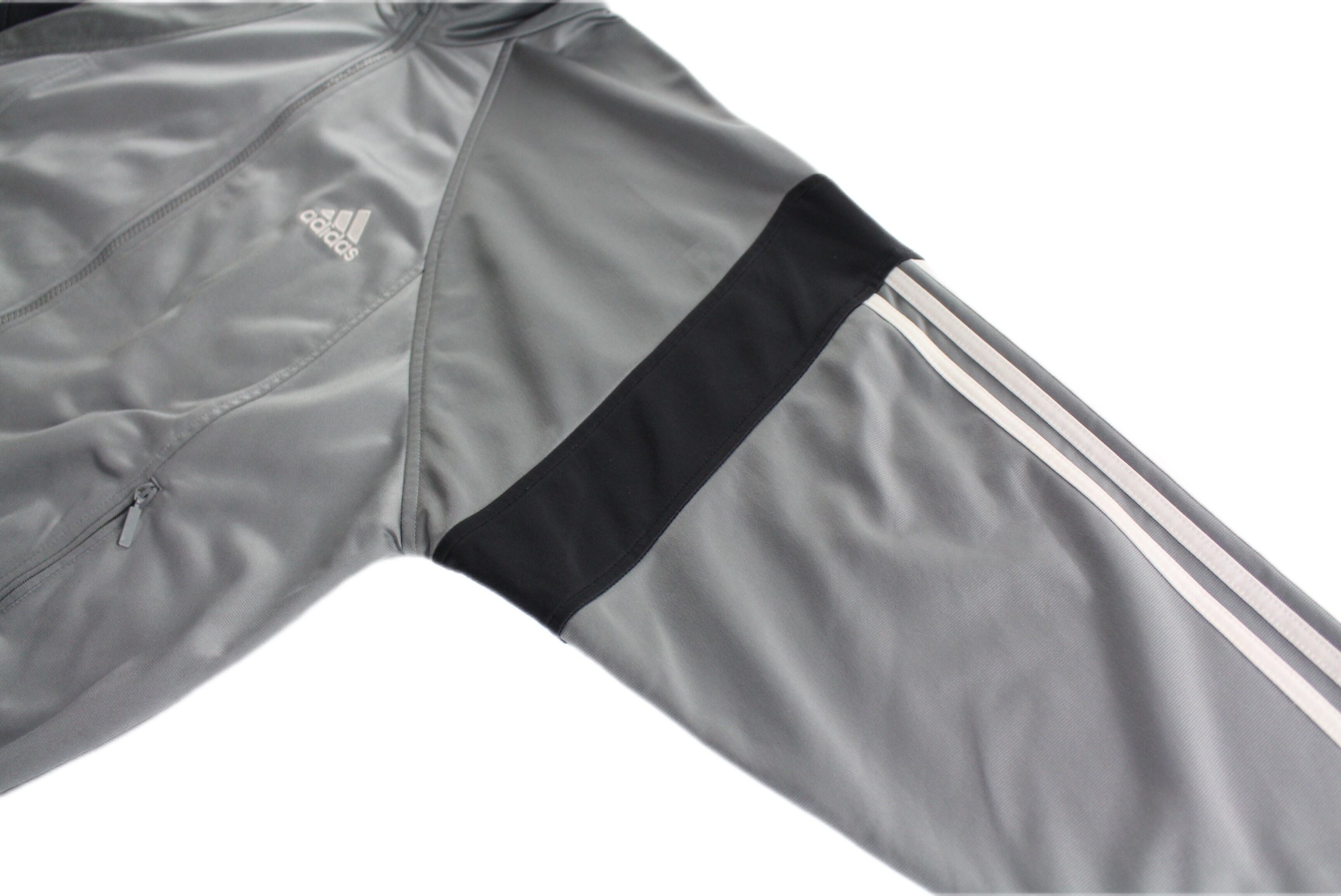 シルバーグレーのボディにブランドを象徴する3本ホワイトライン。使い勝手の良いジャージ生地にハイネックデザイン。