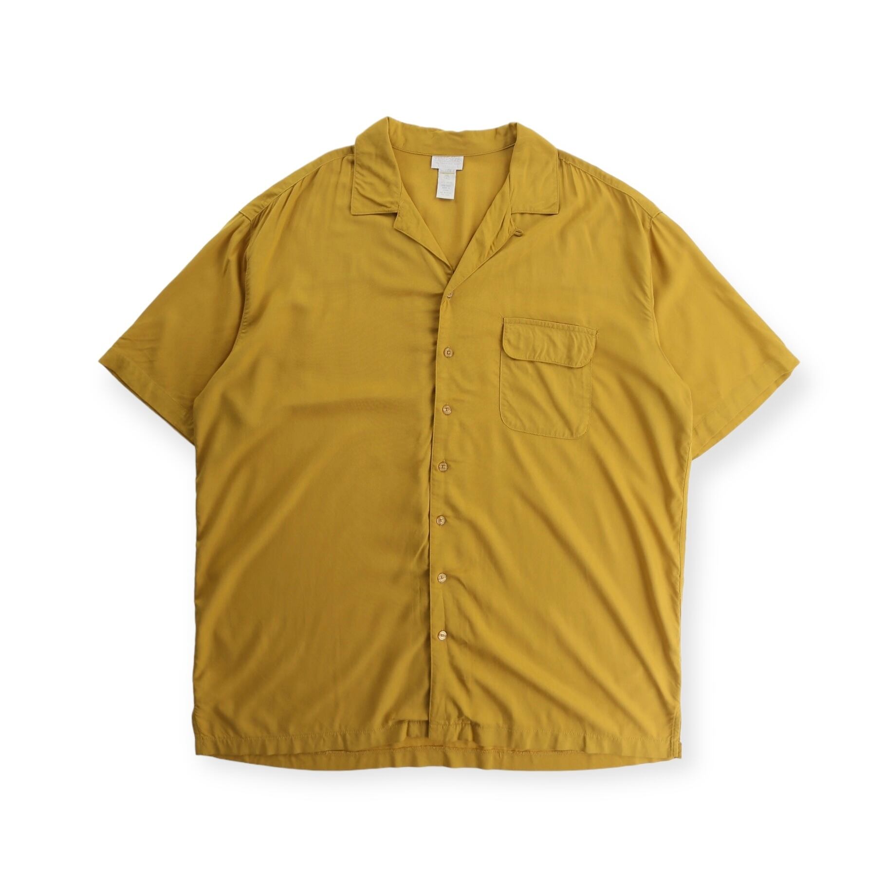 【COU】1980s~1990s KINGSIZE mustard rayon open collar shirt -4551-