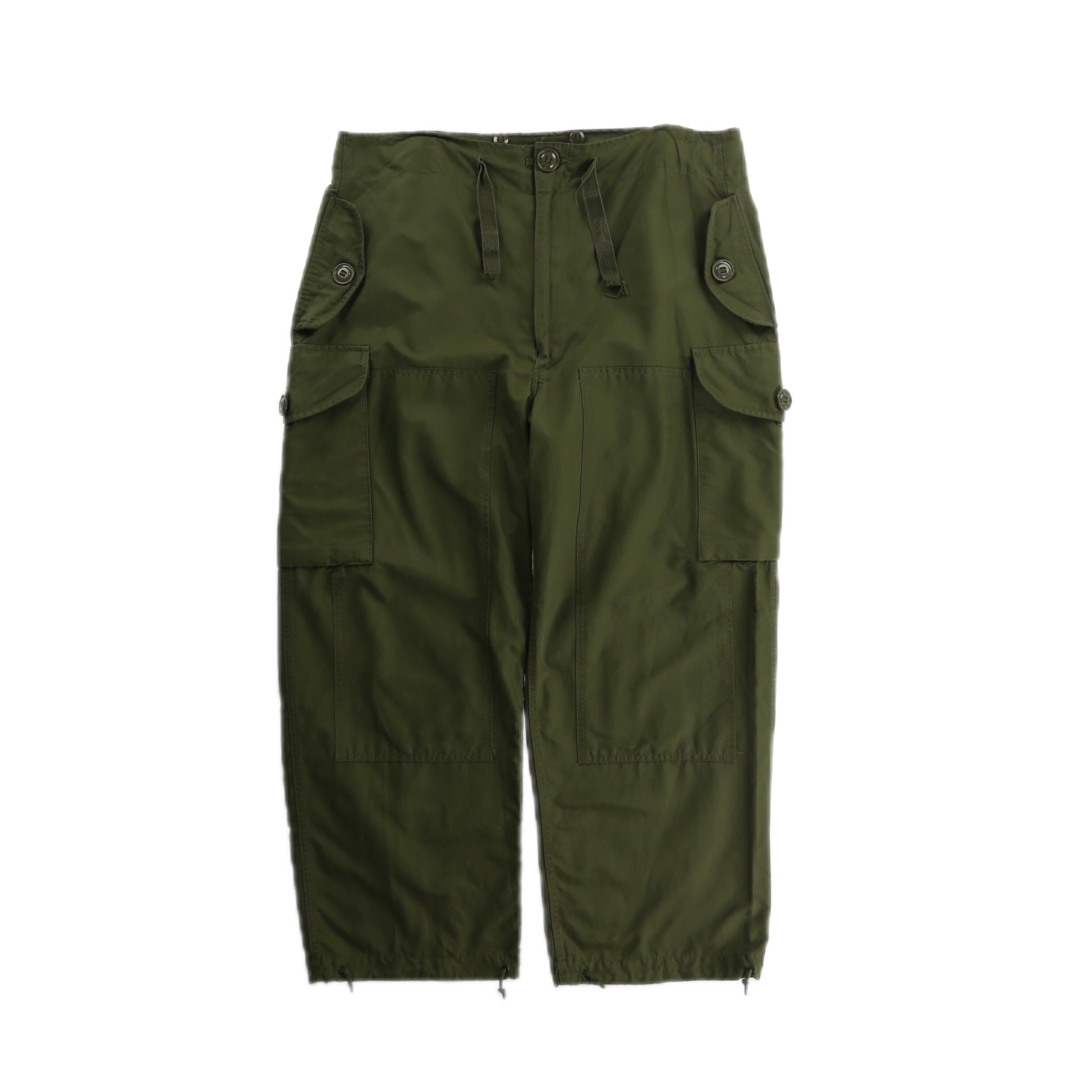 光沢感のあるミリタリーオリーブカラーに軽やかに着れるコットン×ナイロン生地のオーバーパンツ仕様。この色味も米軍には無いクールなカラーです。